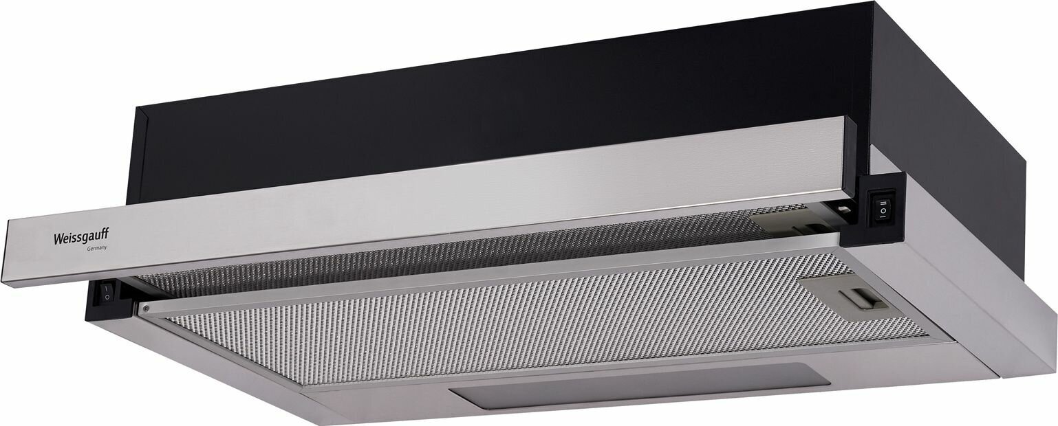 Встраиваемая вытяжка Weissgauff Встраиваемая с выдвижной кареткой, 60см, 450 м3, панель управления:нержавеющая сталь, механическое управление,