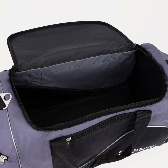 Сумка спортивная на молнии с подкладкой, 3 наружных кармана, цвет чёрный/серый