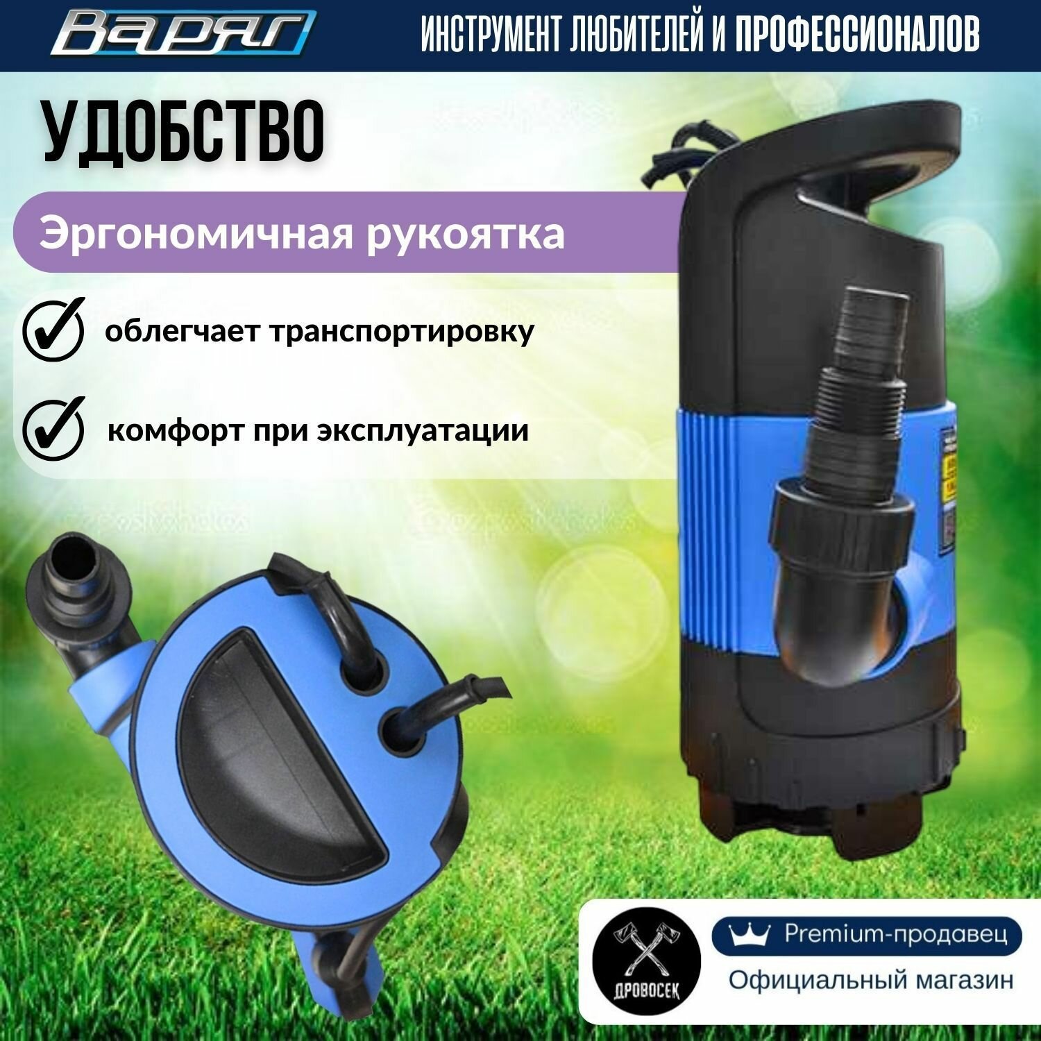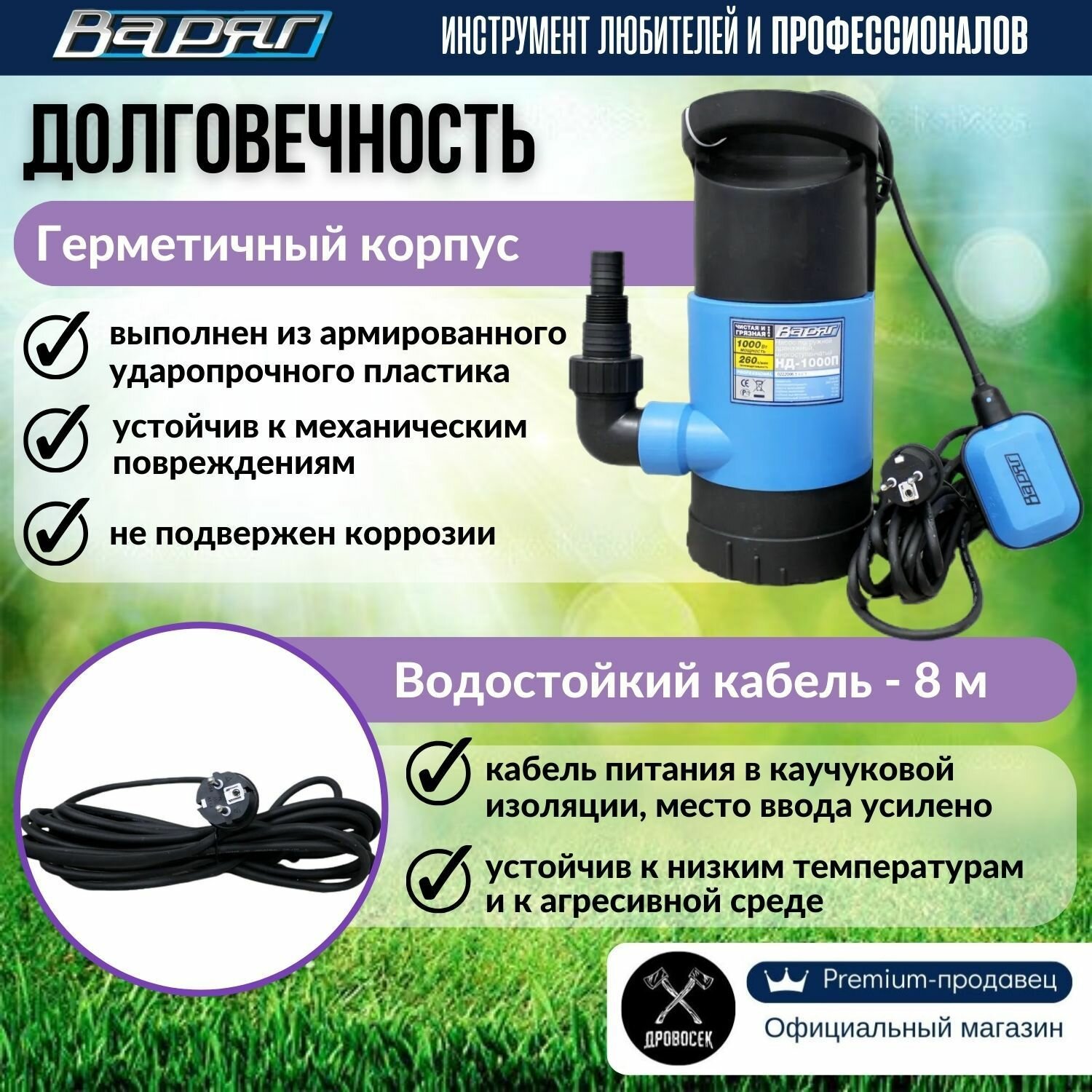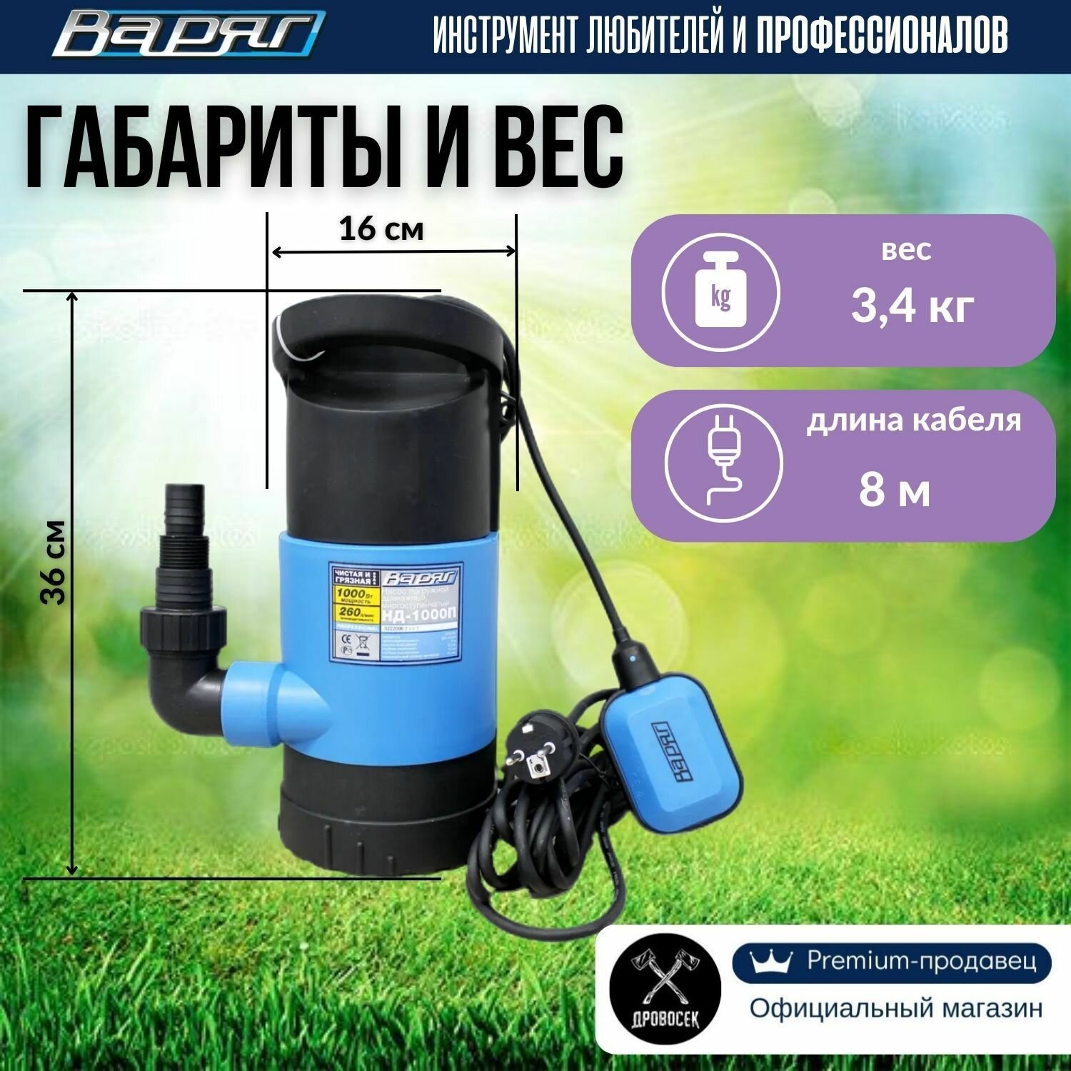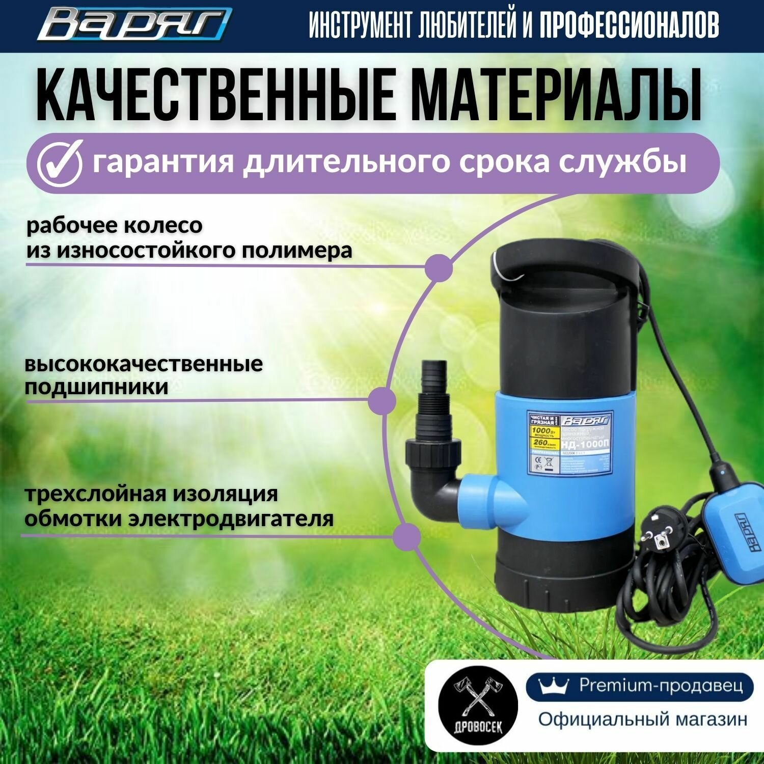 Дренажный насос для грязной и чистой воды варяг НД-1000П / насос для воды погружной с наружным поплавковым выключателем