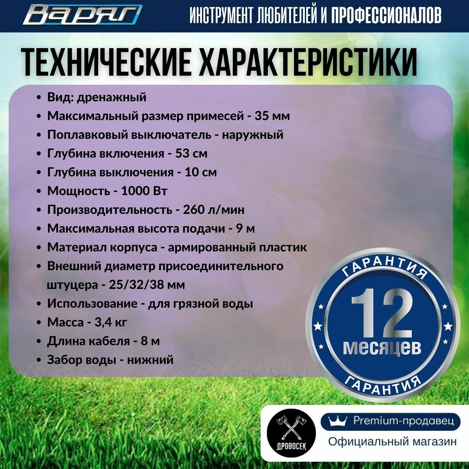Дренажный насос для грязной и чистой воды варяг НД-1000П/ насос для воды погружной с поплавковым выключателем, 1000 Вт, 260л/мин интересное: