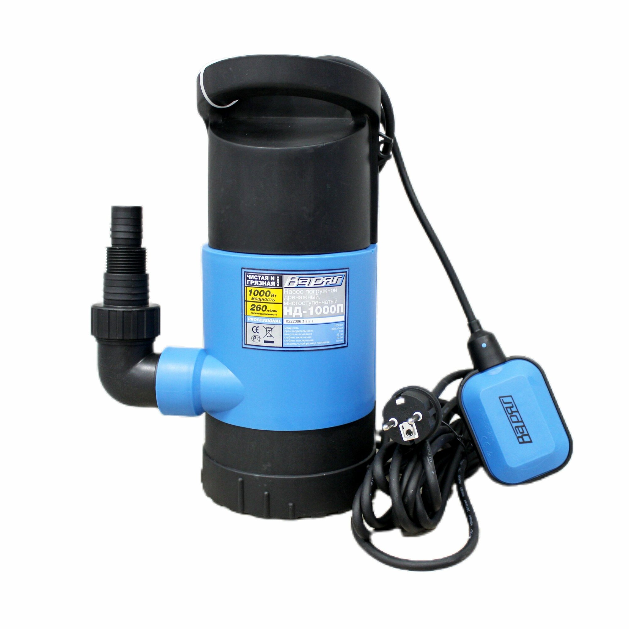 Дренажный насос для грязной и чистой воды варяг НД-1000П, насос для воды погружной с наружным поплавковым выключателем