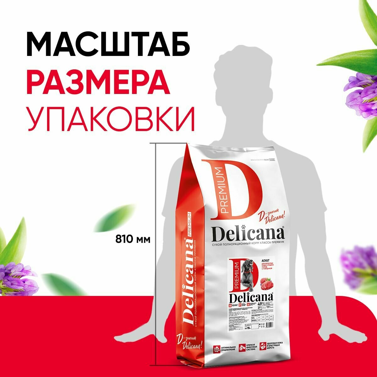 DELICANA для собак средних пород (говядина) (упаковка: 15 кг., вес: 15)