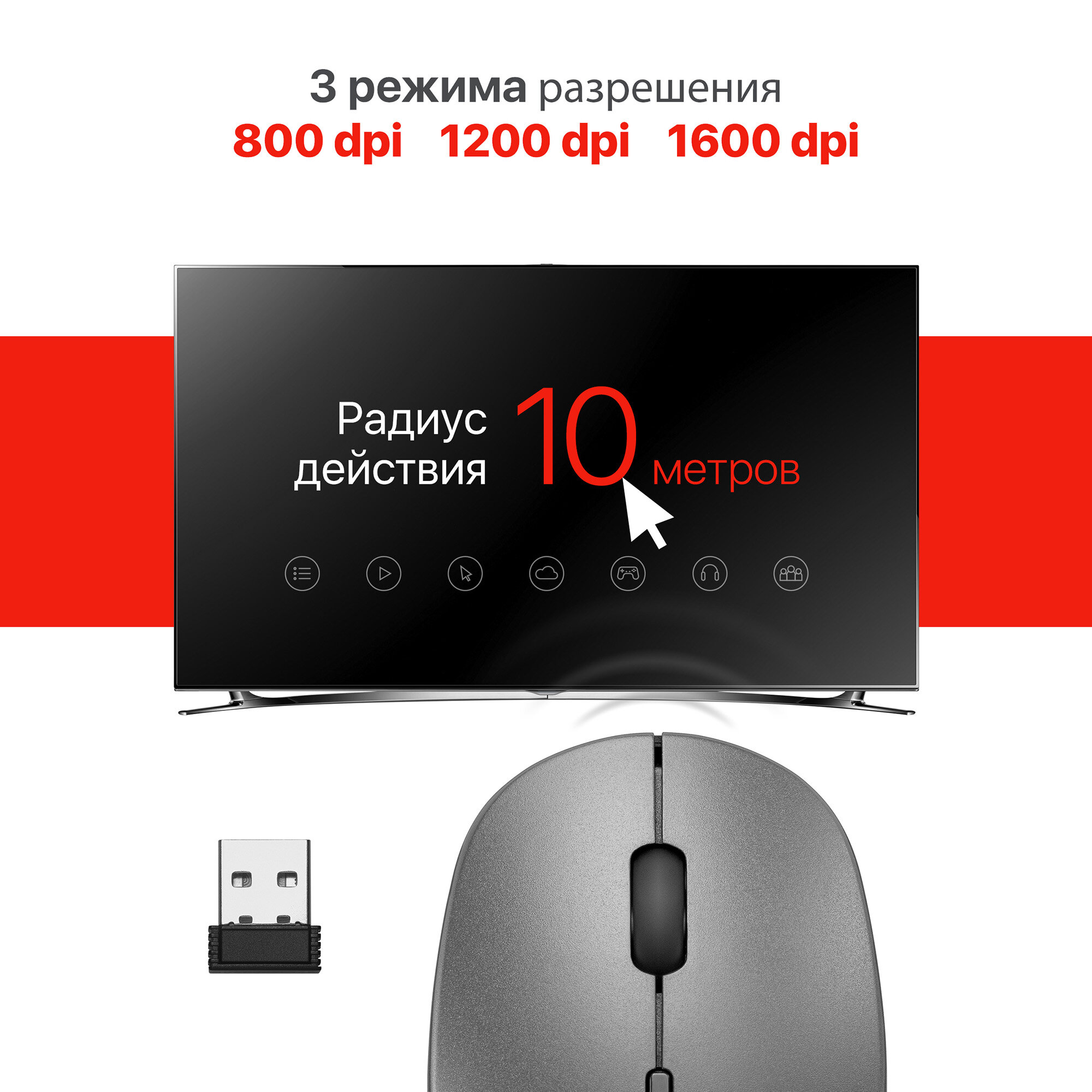 Мышь беспроводная Defender Auris MB-027, 1600 dpi, USB/Радиоканал, серый (52029)