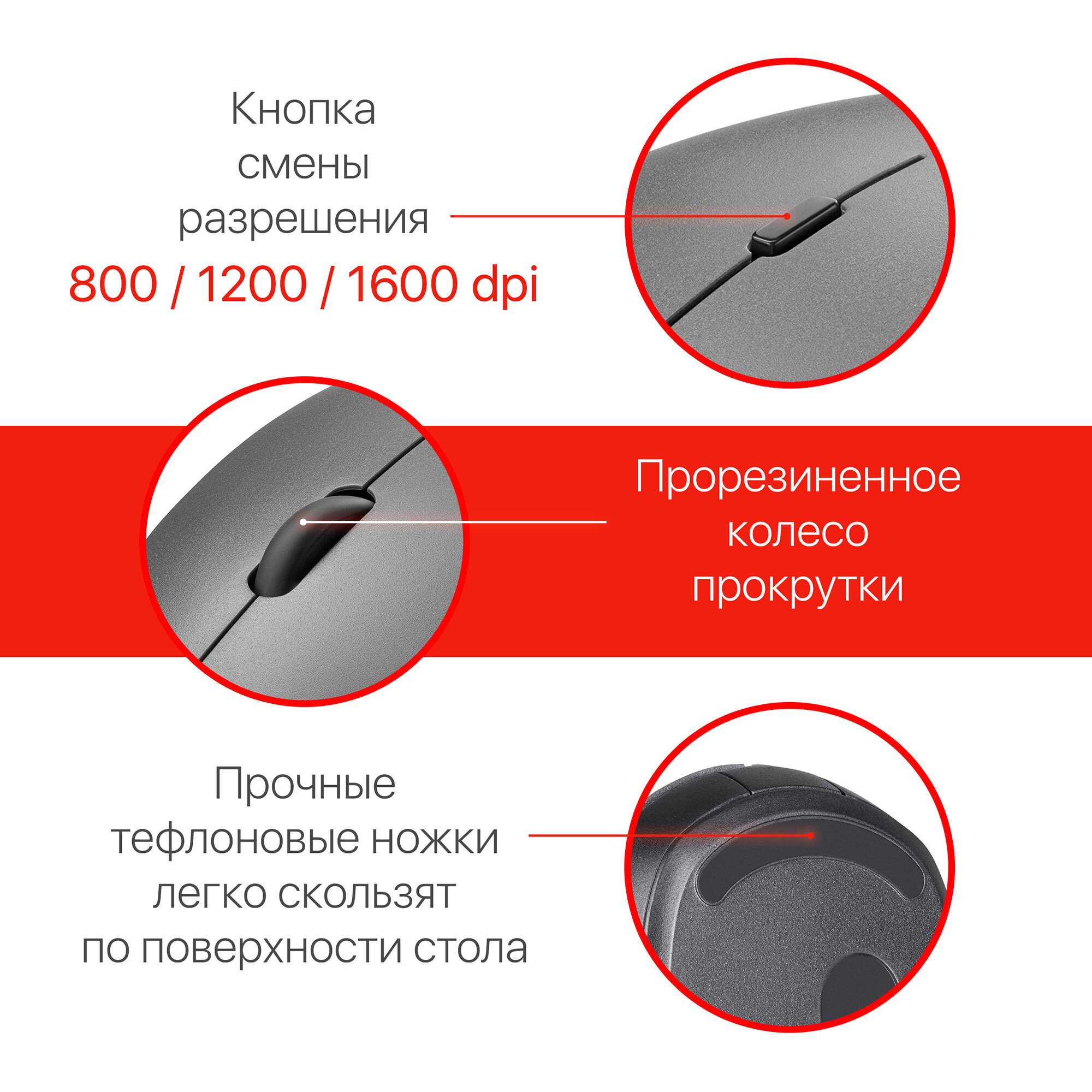 DEFENDER Auris MB-027 серый, 800-1600dpi,бесшумная