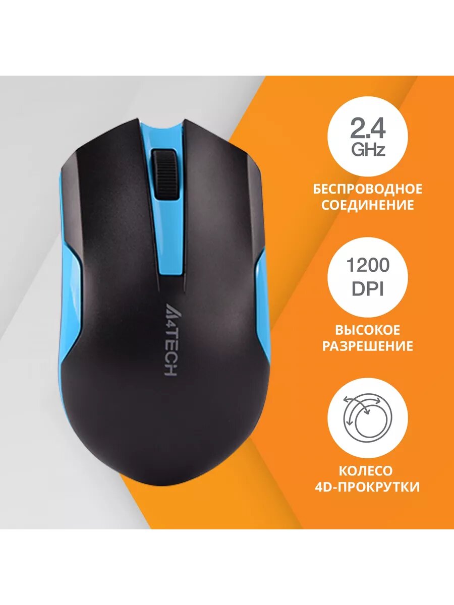Купить Мышь A4TECH G3-200N, оптическая, беспроводная, черный и синий