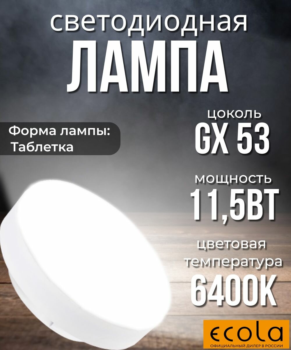 Купить 10 шт. Светодиодная лампочка Ecola Таблетка 11,5Вт GX53 6400K 220В
