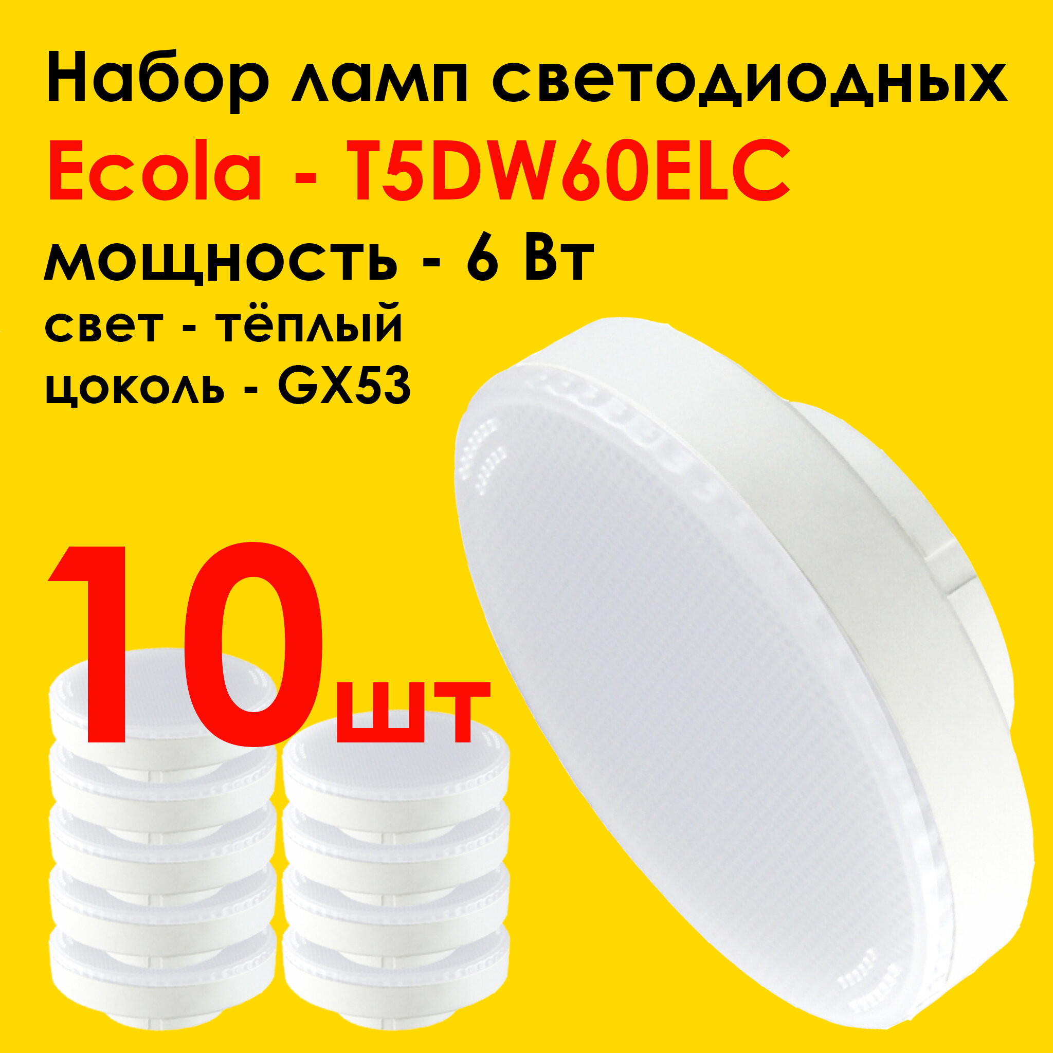 Купить Лампочка светодиодная, потолочная, для встраиваемых светильников/ Ecola Light/ GX53 LED, мощность 6W 2800K теплый белый свет, набор 10шт.