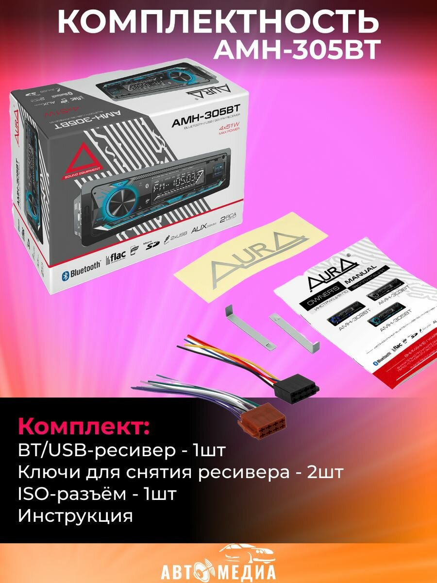 Магнитола (головное устройство) 1Din Aura AMH-305BT интересное: