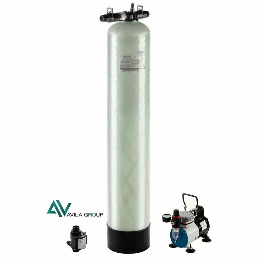 Купить Система напорной аэрации, магистральный фильтр для воды Water-Pro AV Air 0844, компрессор AS-19-2, 1500 л/ч, водоочиститель, обезжелезиватель