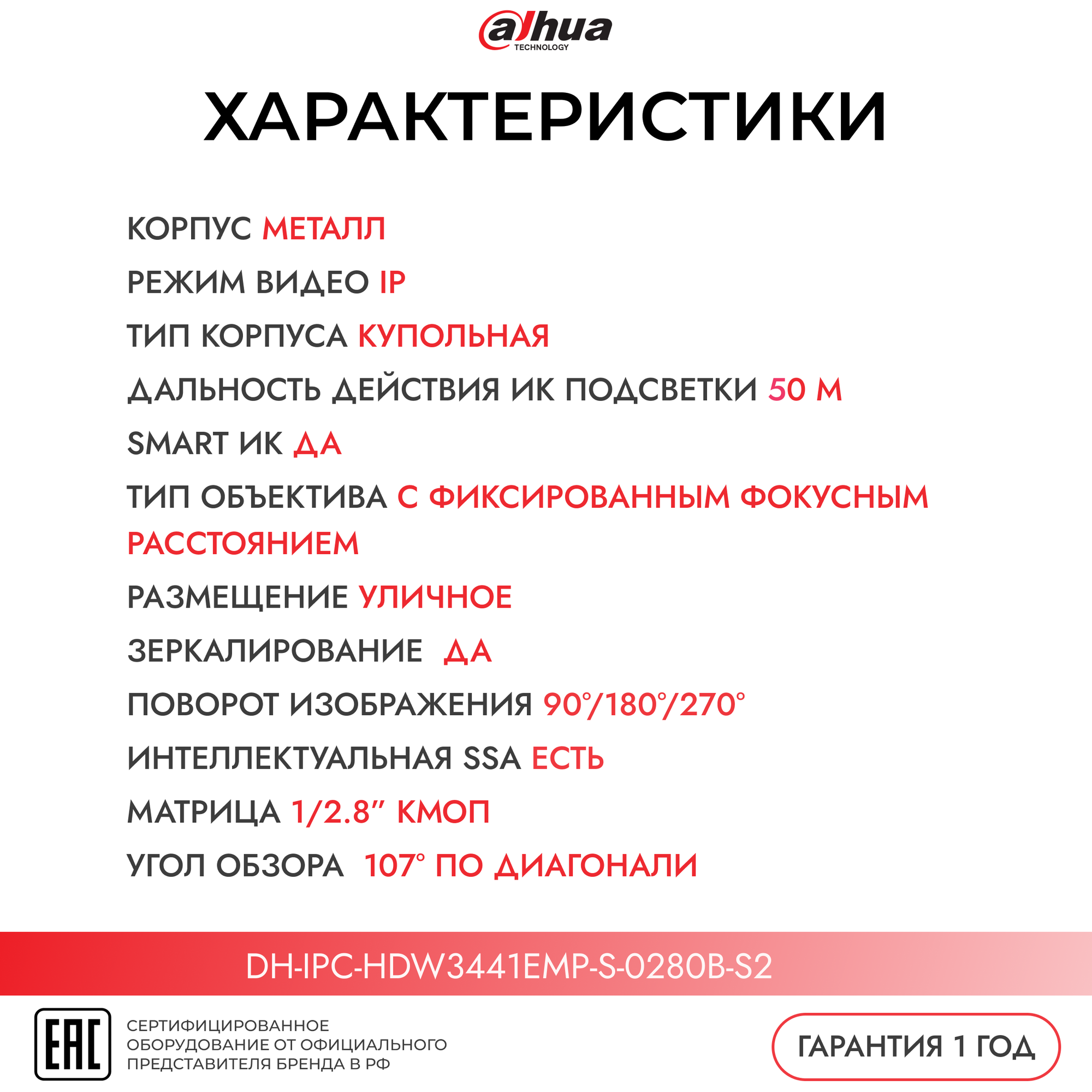 Видеокамера Dahua DH-IPC-HDW3441EMP-S-0280B-S2 уличная купольная IP-видеокамера DH-IPC-HDW3441EMP-S- .