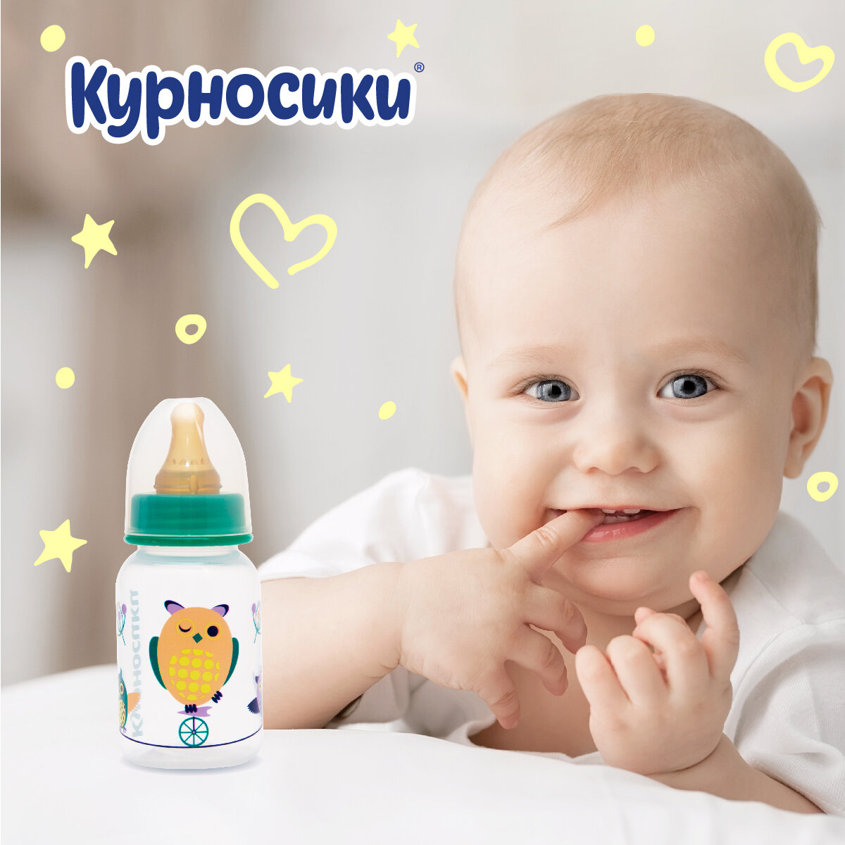 Бутылочка для кормления малышей / Бутылочка для кормления Курносики, с латексной соской, медленный поток 125 мл