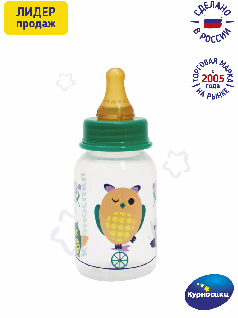 Бутылочка для кормления новорожденных Курносики с латексной соской зелёная "Совы", 0+ мес, 125 мл.