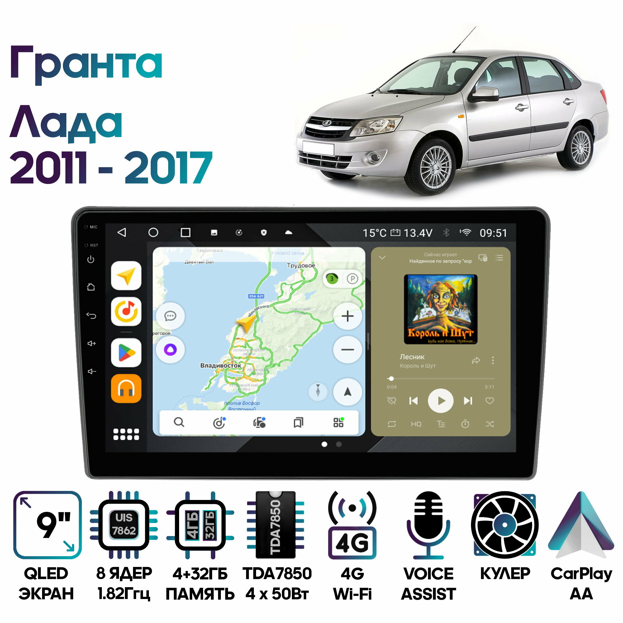 Штатная магнитола Wide Media Лада Гранта (Lada Granta) 2011 - 2017 / Android 10, 9 дюймов, 4/32GB, 8 ядер, DSP, 4G интересное: