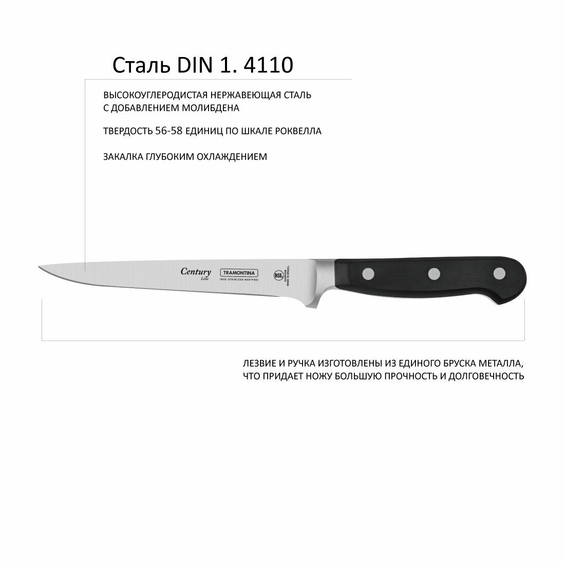 Нож TRAMONTINA Century 24023/106, филейный, для мяса, 152мм, заточка прямая, стальной, черный
