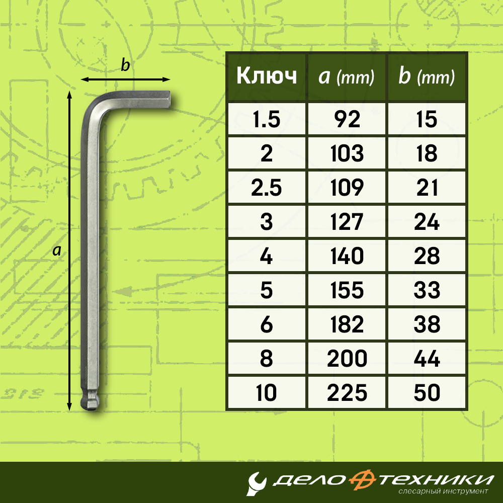 СохранитьДело Техники Набор ключей шестигр.с шаром 9 шт длинных 1.5,2,2.5,3,4,5,6,8,10 мм "ДТ"/40 562092 интересное: