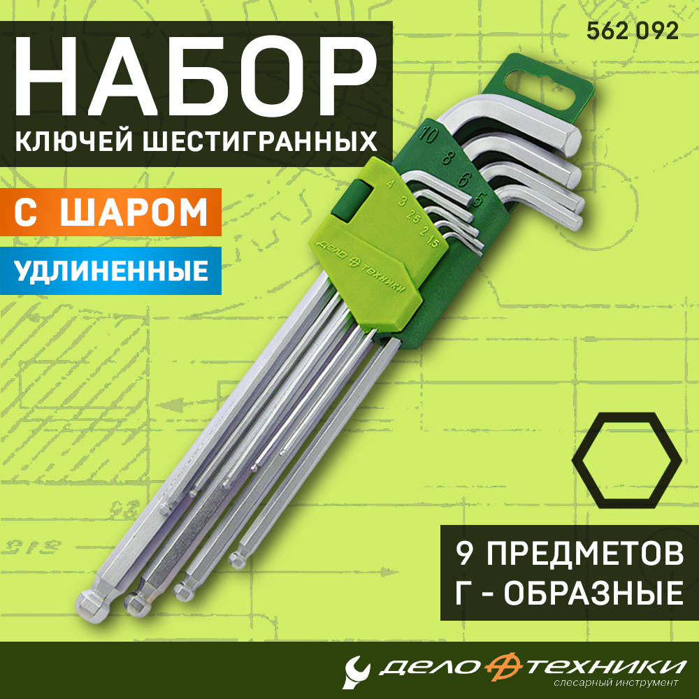 Дело техники 562092 Набор ключей шестигр.с шаром 9 шт длинные(1.5 2 2.5 3 4 5 6 8 10 мм) ДТ/40