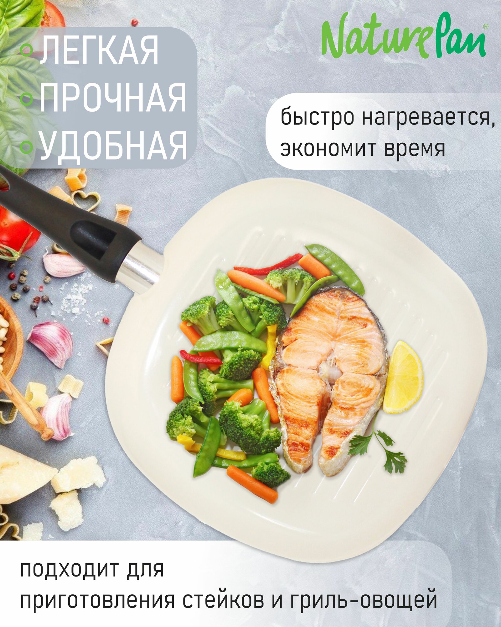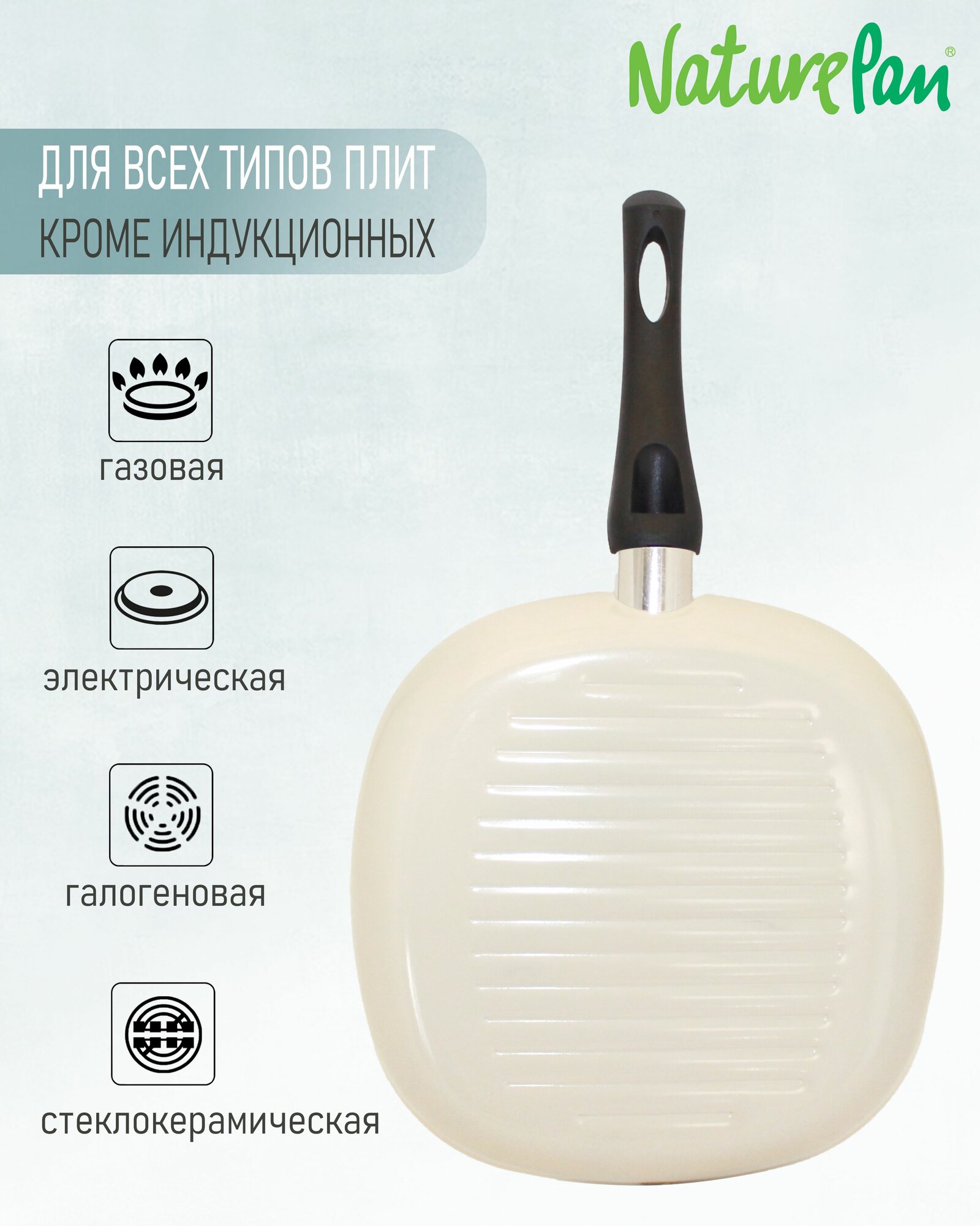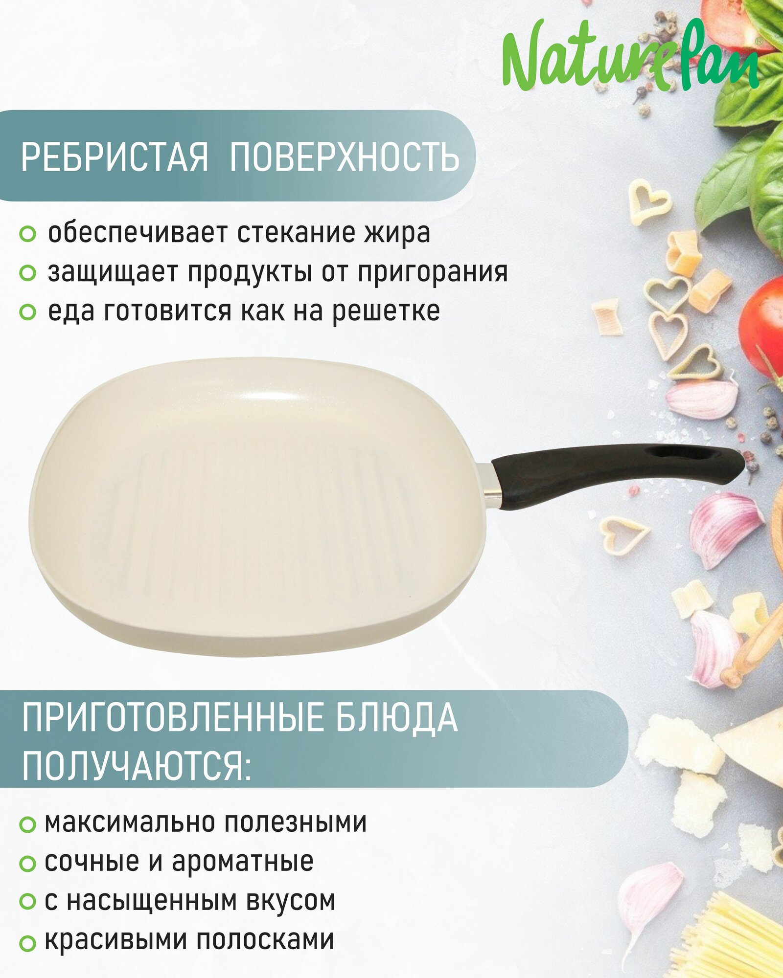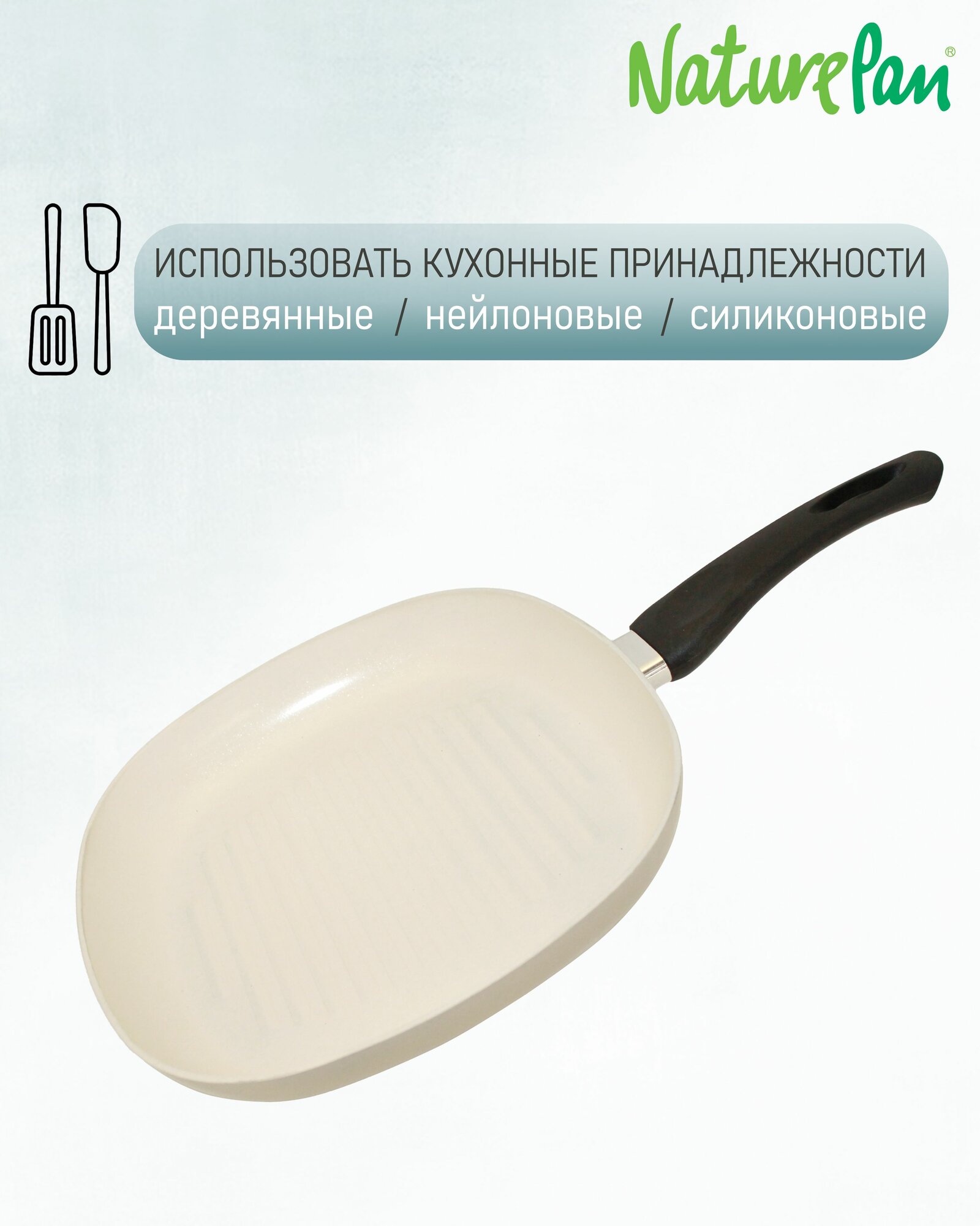 Сковорода-гриль квадратная 26х26см, с антипригарным керамическим покрытием, овощечистки в подарок, NaturePan Еco-Line интересное: