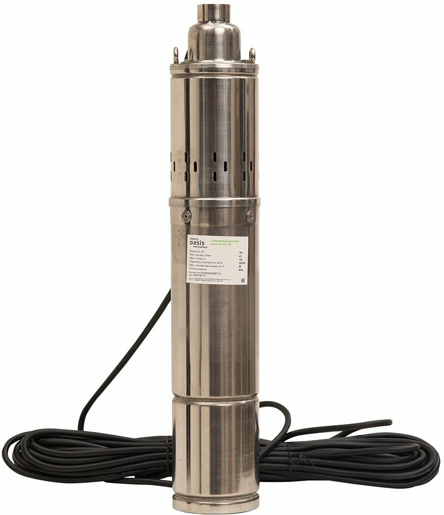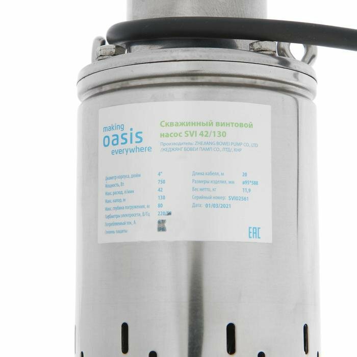 Насос скважинный Oasis SVI 42/130, винтовой, 750 Вт, напор 130 м, 42 л/мин, кабель 20 м