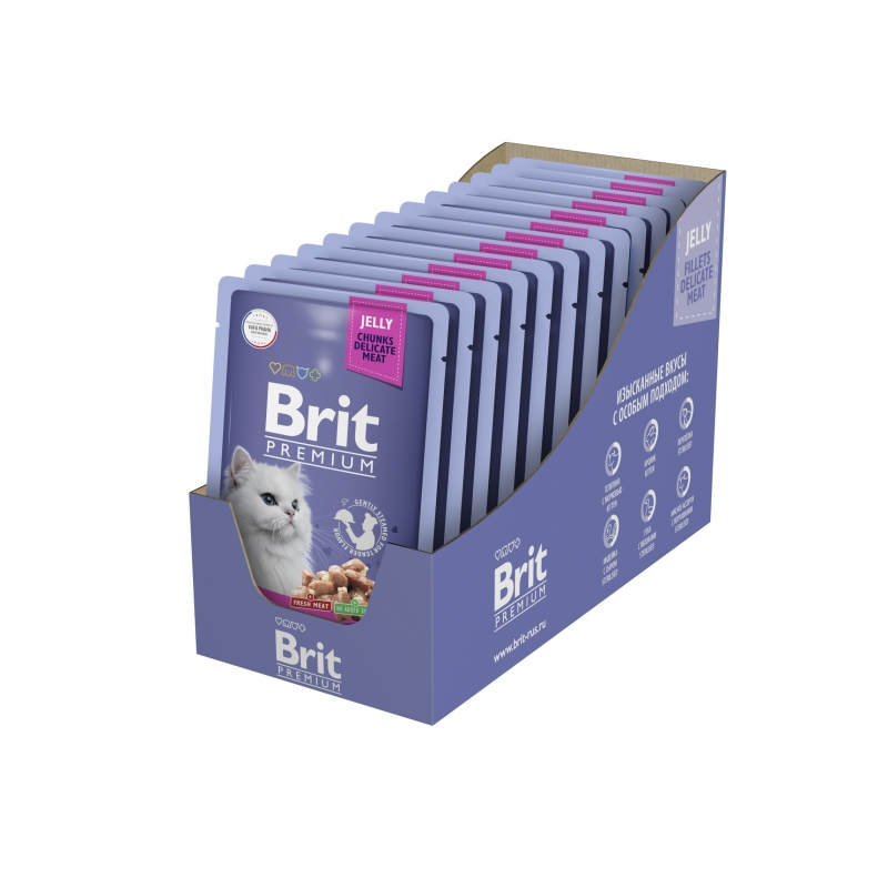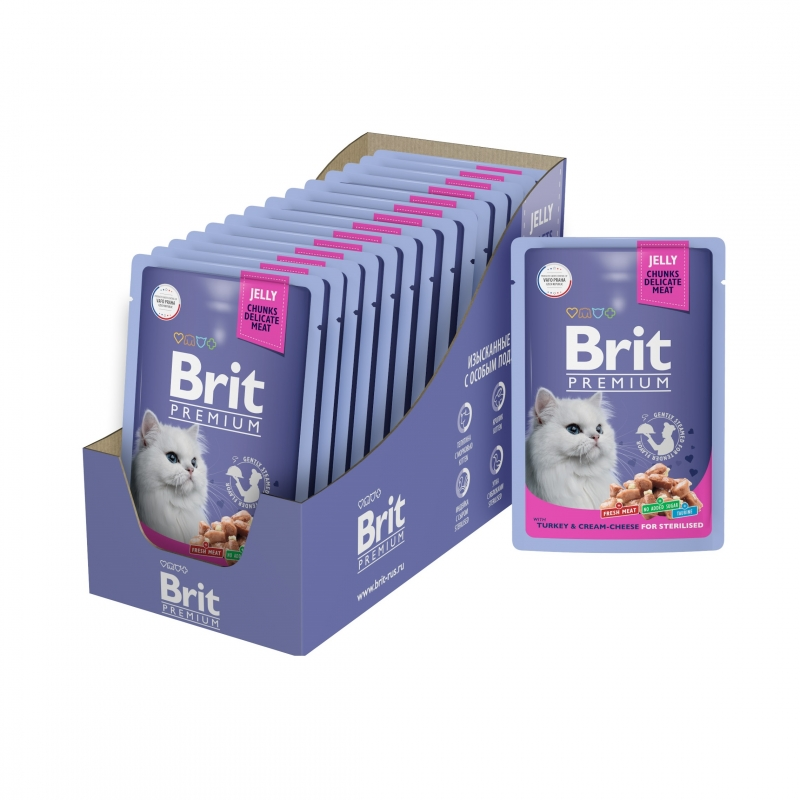 Влажный корм Brit Premium для стерилизованных кошек, индейка с сыром в желе, пауч, 85 г