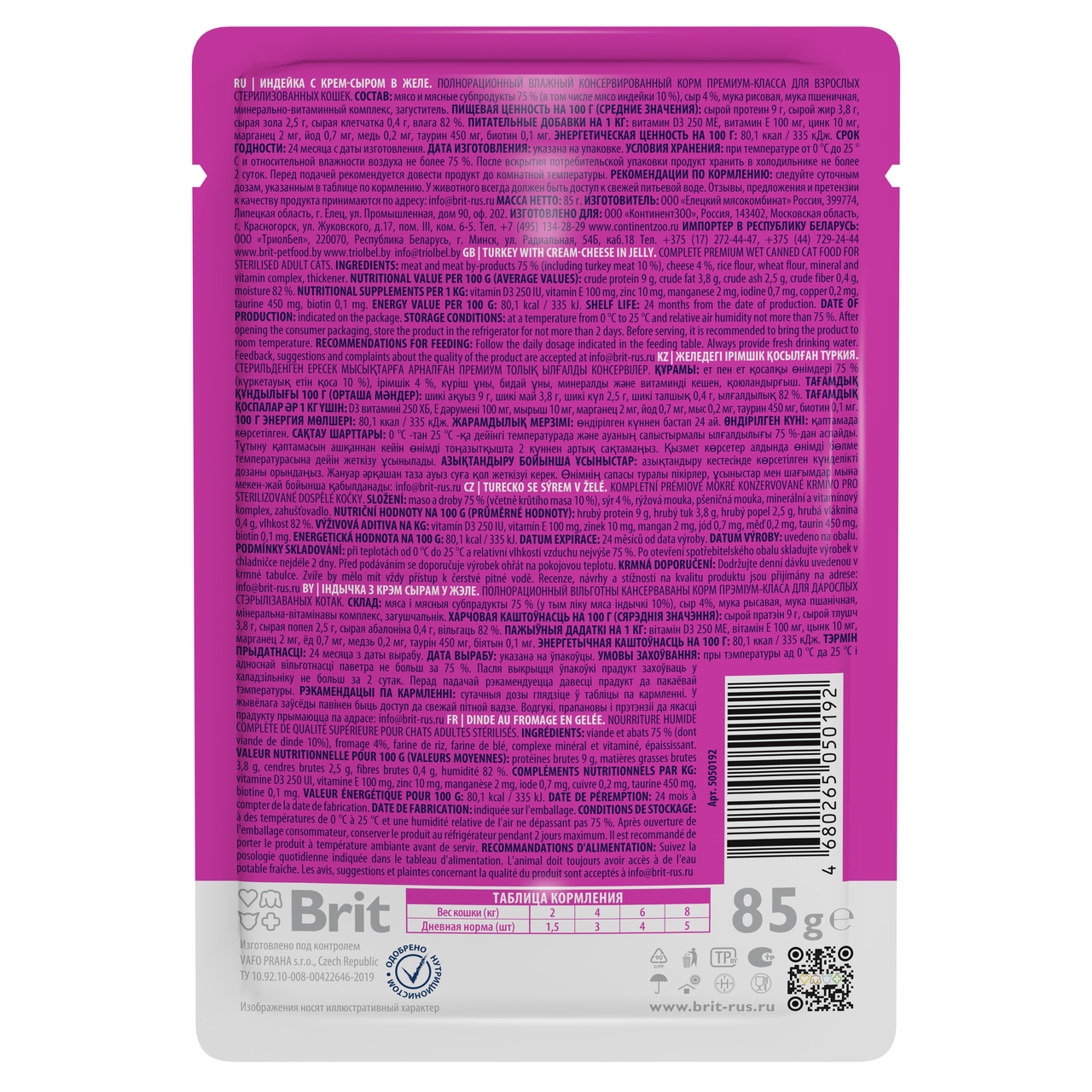 Brit - Паучи для взрослых стерилизованных кошек с индейкой и сыром в желе - 0,085 кг 58576
