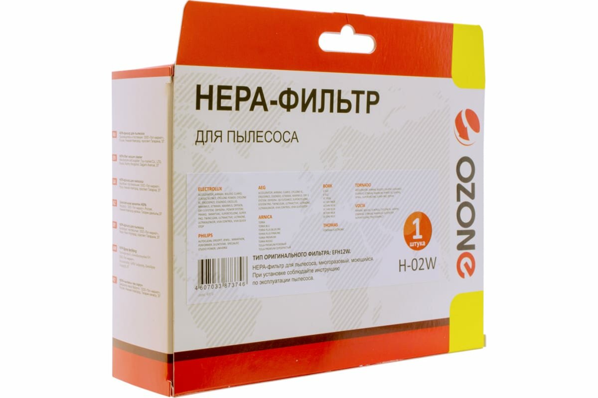 HEPA фильтр для пылесоса ELECTROLUX, PHILIPS, AEG, BORK, 1 шт., бренд: OZONE, арт. H-02, тип оригинального фильтра: EFH12