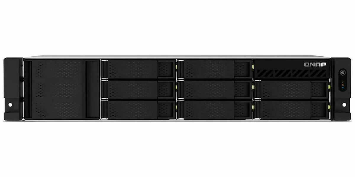 - ОС QTS Hero - 8 слотов для HDD и 2 для NVME |