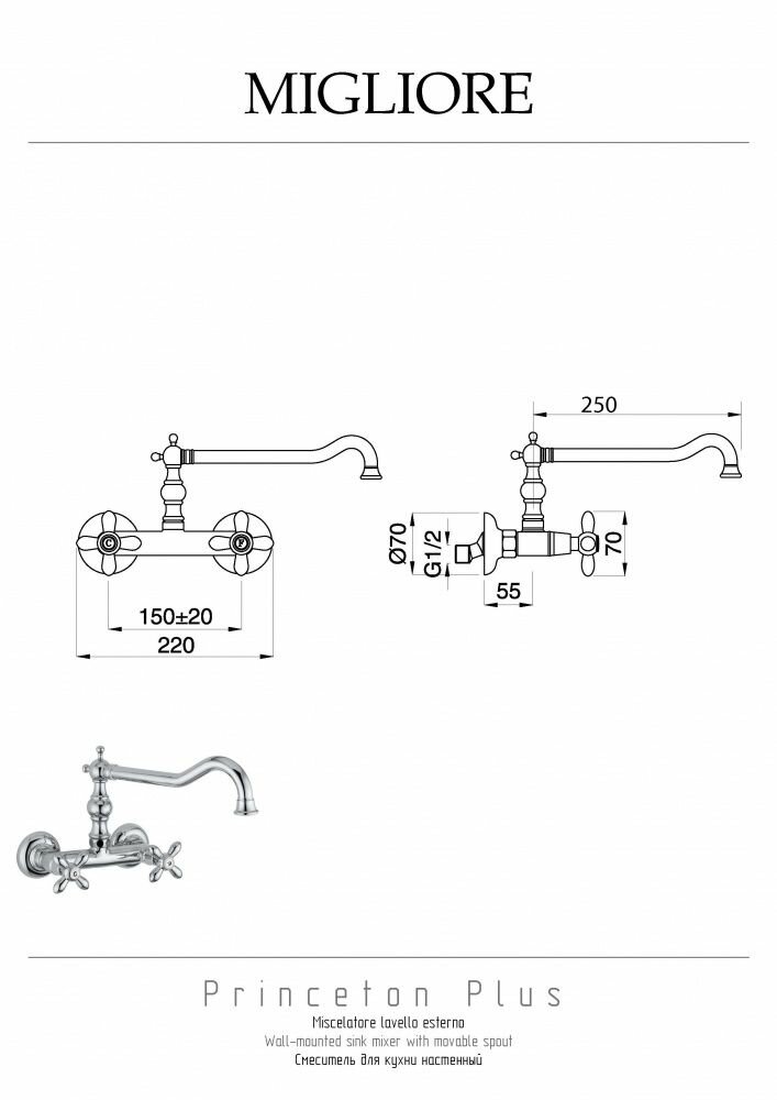 Смеситель для кухни настенный, золото Migliore CUCINA PRINCETON PLUS ML.CUC-8052.DO