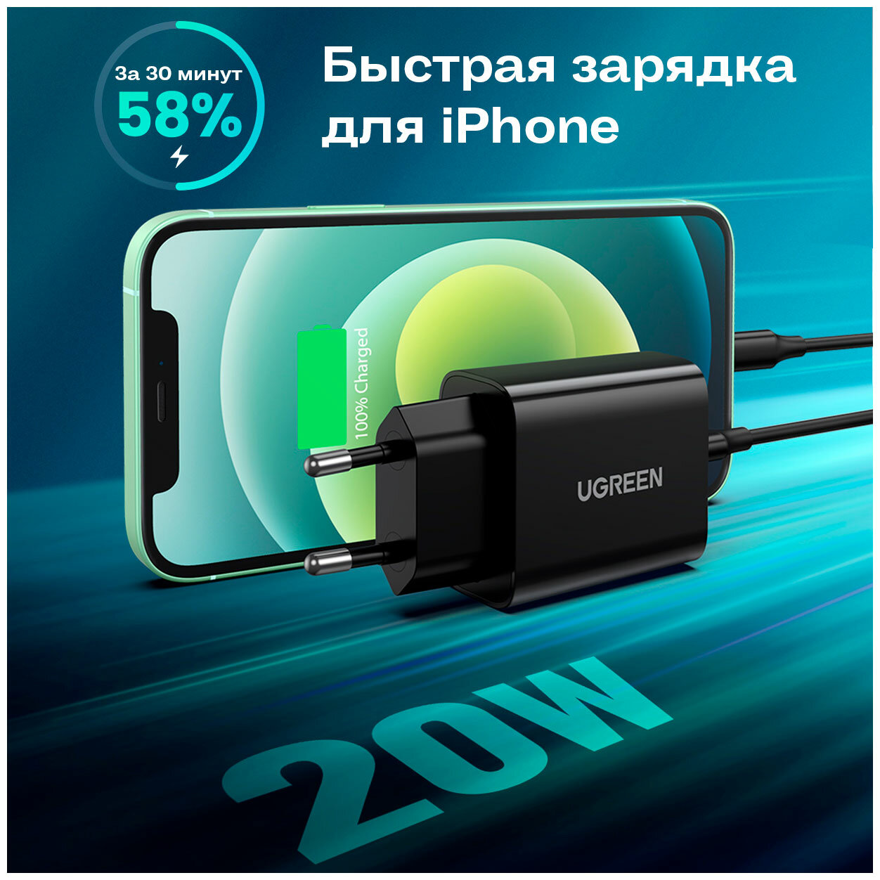 Сетевое з/у Ugreen CD137 (10191) Fast Charging 20W, черный (10191_) .