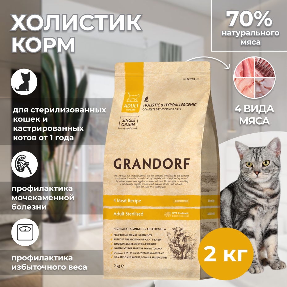 GRANDORF для стерилизованных кошек 4 вида мяса с пробиотиками 2кг интересное: