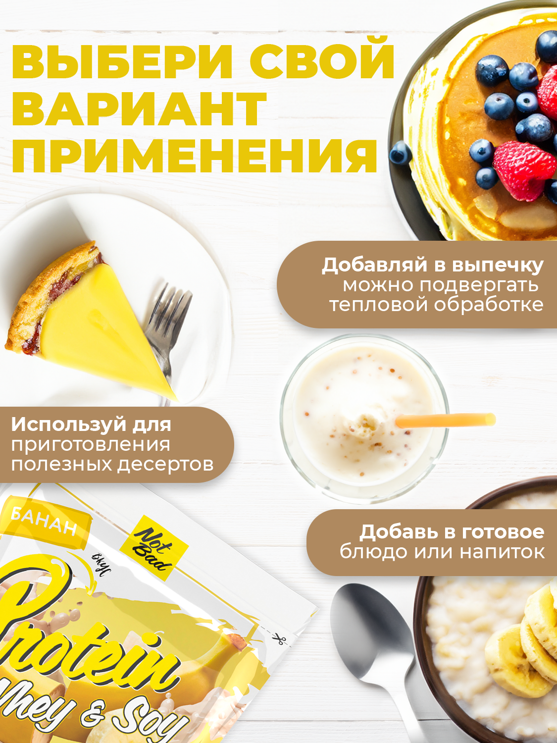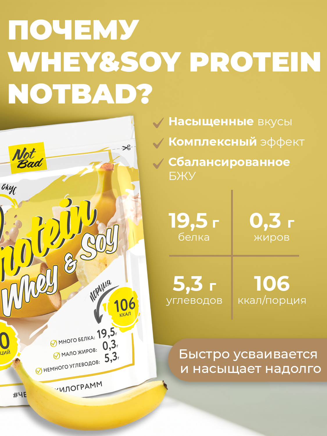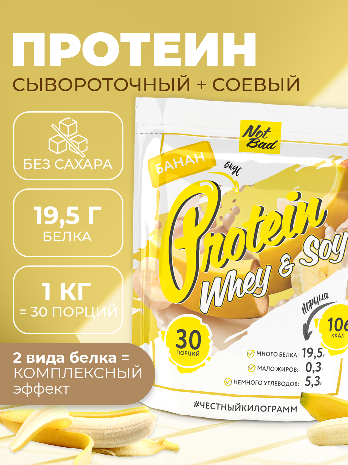 NOTBAD Whey & Soy Protein Соевый и сывороточный протеин 1000 г (Банан)