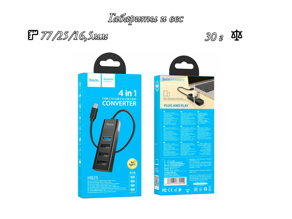 СохранитьHOCO HB25 конвертер HUB 4 in 1, Type-C to USB3.0+USB2.0x3, Plug & Play, Черный интересное: