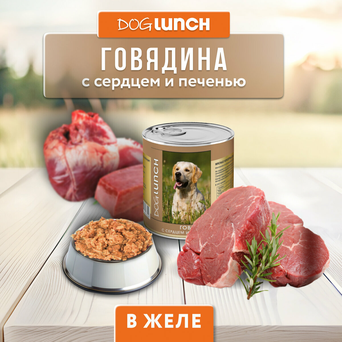 DogLunch консервы для собак Говядина с Сердцем и печенью в желе 12шт х 750гр
