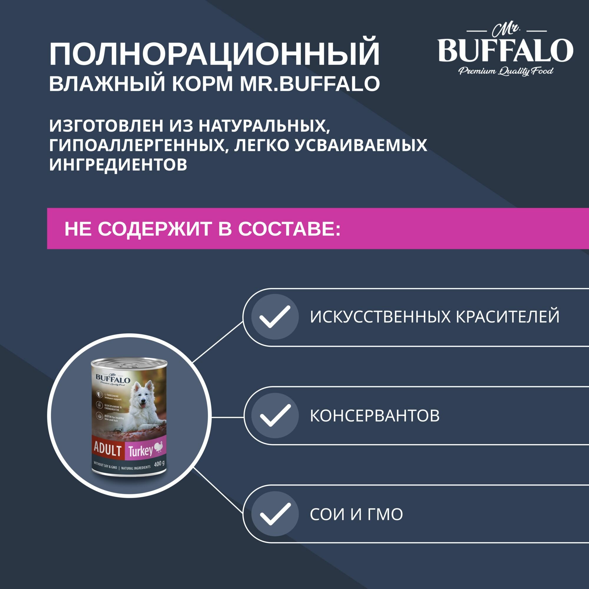 Купить Mr.Buffalo ADULT влажный консервированный корм для собак Индейка 400г
