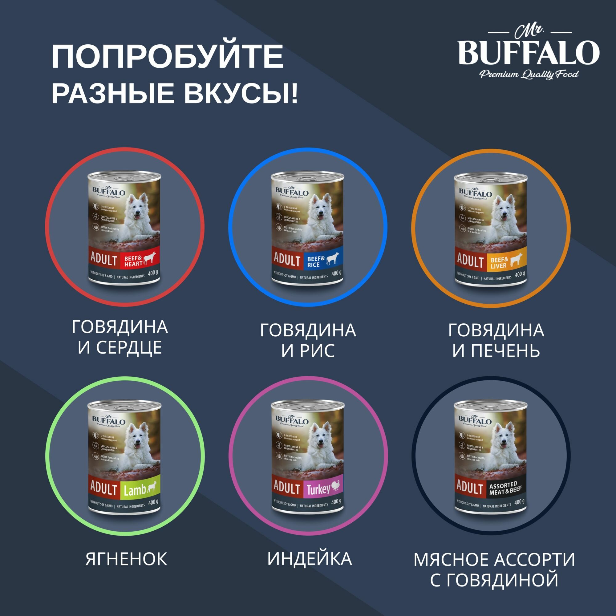 MR.BUFFALO ADULT DOG TURKEY для взрослых собак всех пород с индейкой банка 400 гр NEW 400 гр х 6 шт