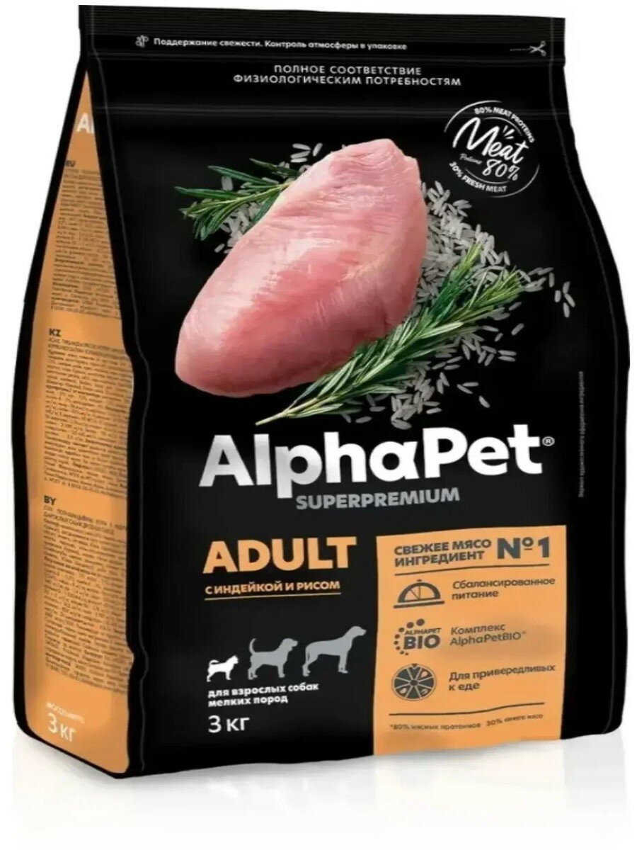 Сухой корм AlphaPet Superpremium MONOPROTEIN из индейки для взрослых собак мелких пород, 3 кг
