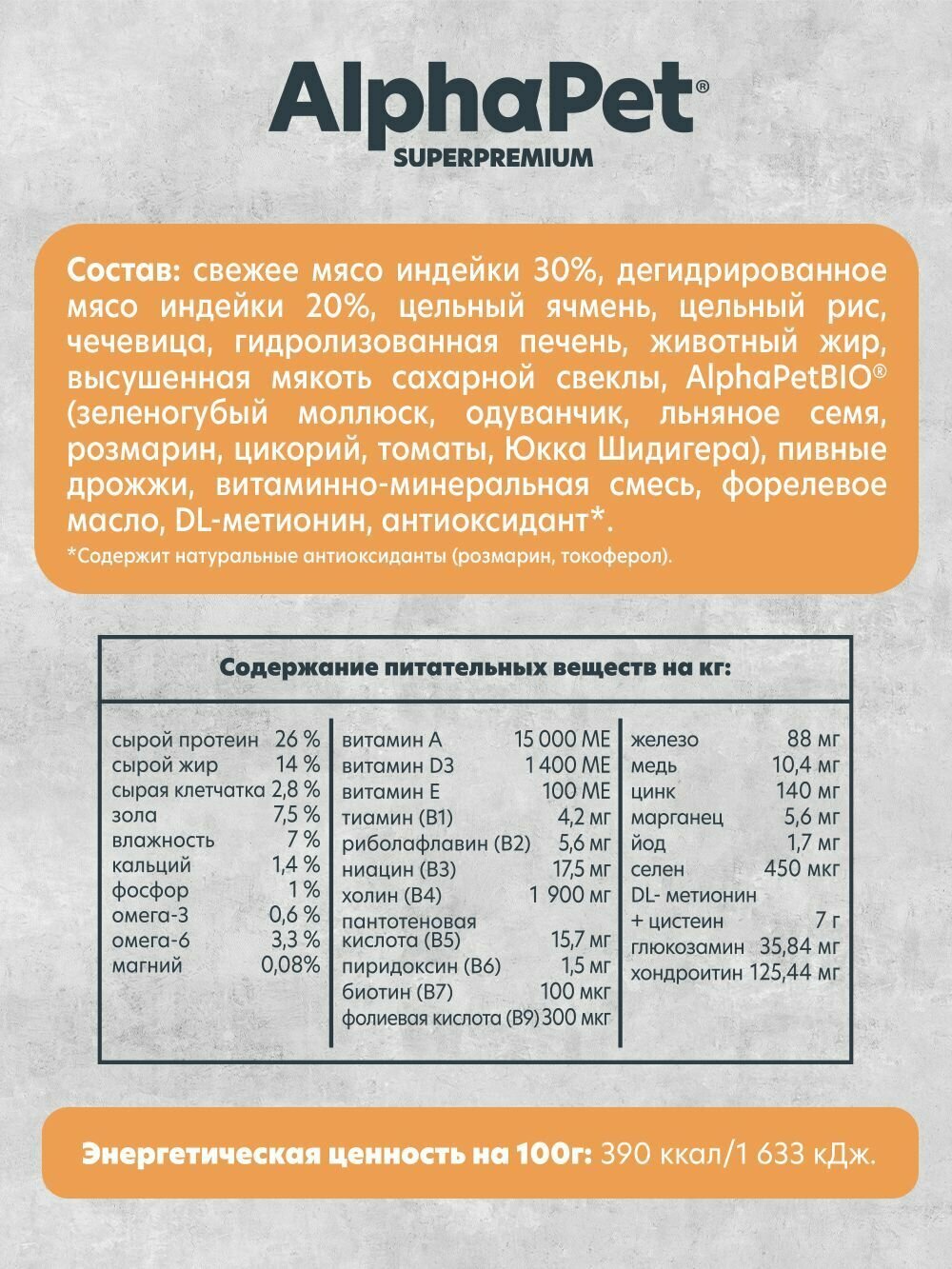 Сухой корм AlphaPet Superpremium Monoprotein АльфаПет для собак Средних и Крупных пород Индейка, 12 кг