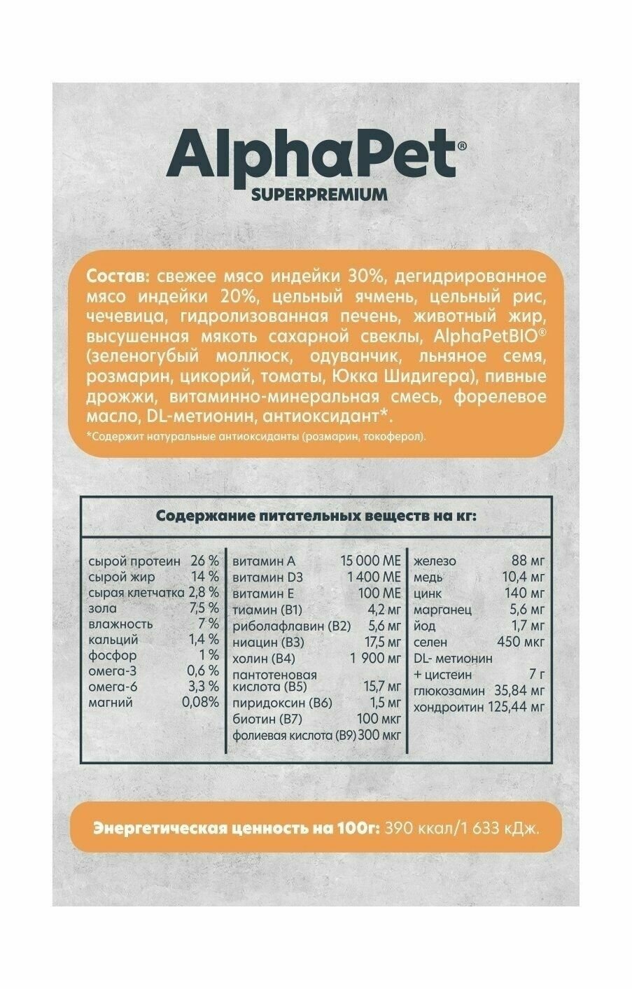 Сухой полнорационный корм AlphaPet Superpremium для собак мелких пород, с индейкой и рисом, 1.5 кг