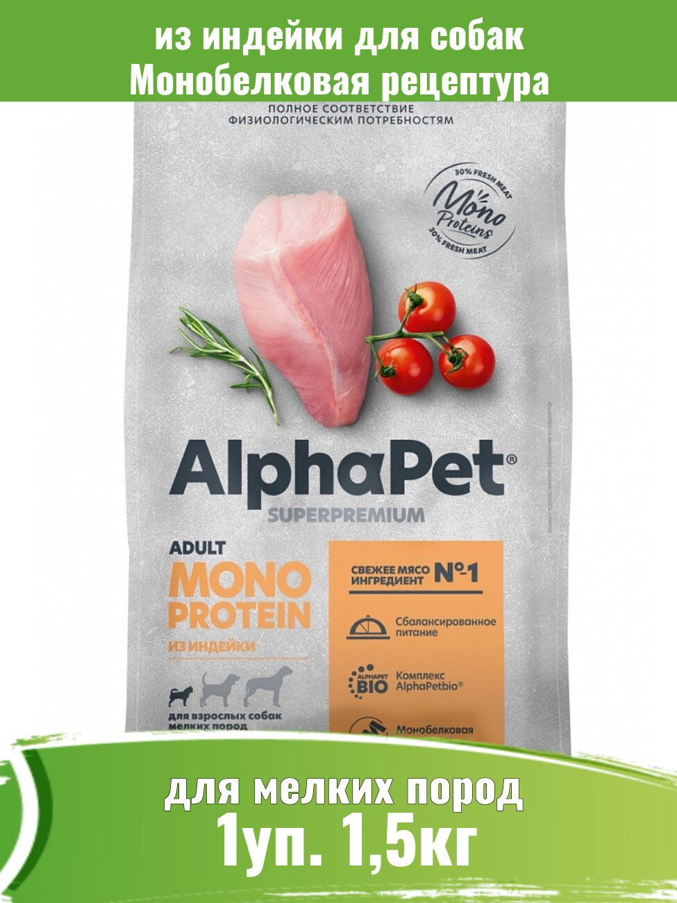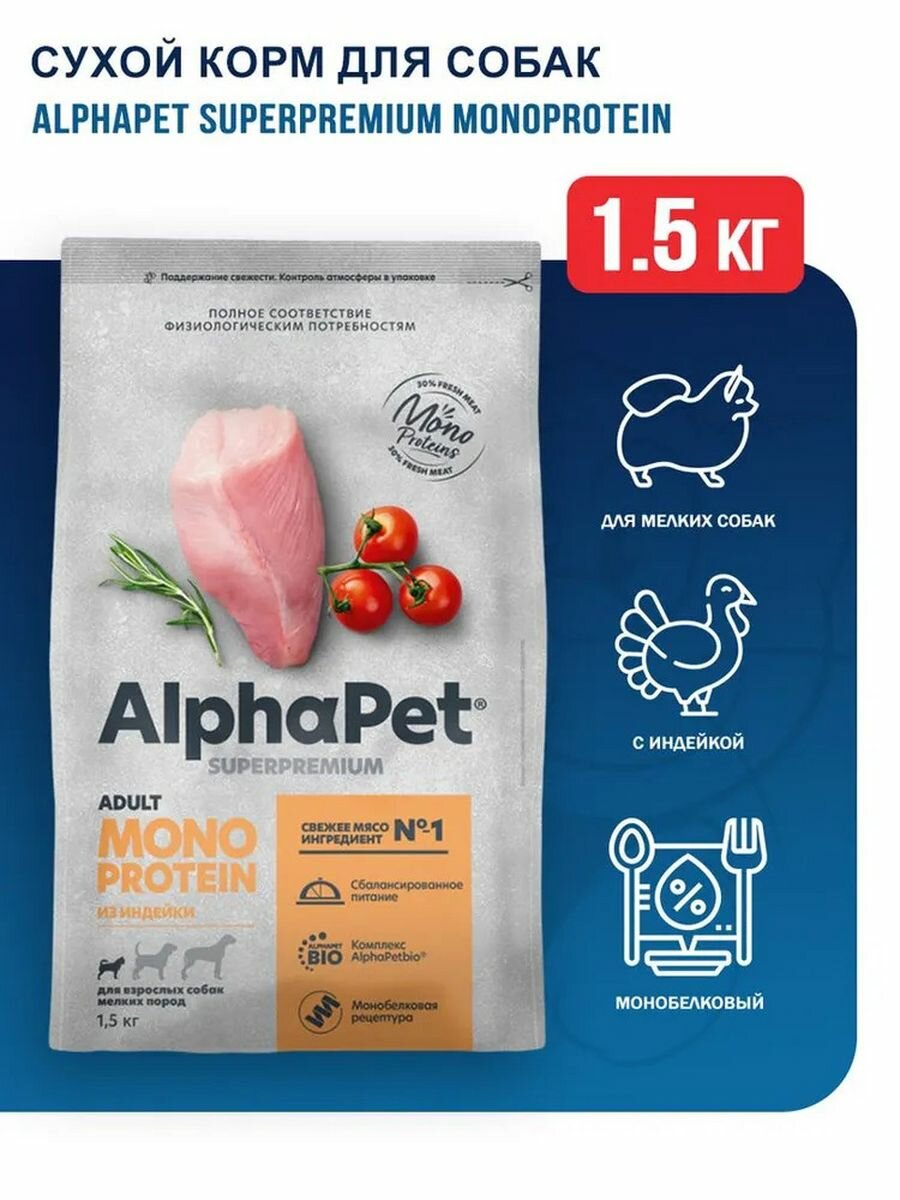 Купить Сухой корм для собак мелких пород AlphaPet с индейкой 1.5 кг