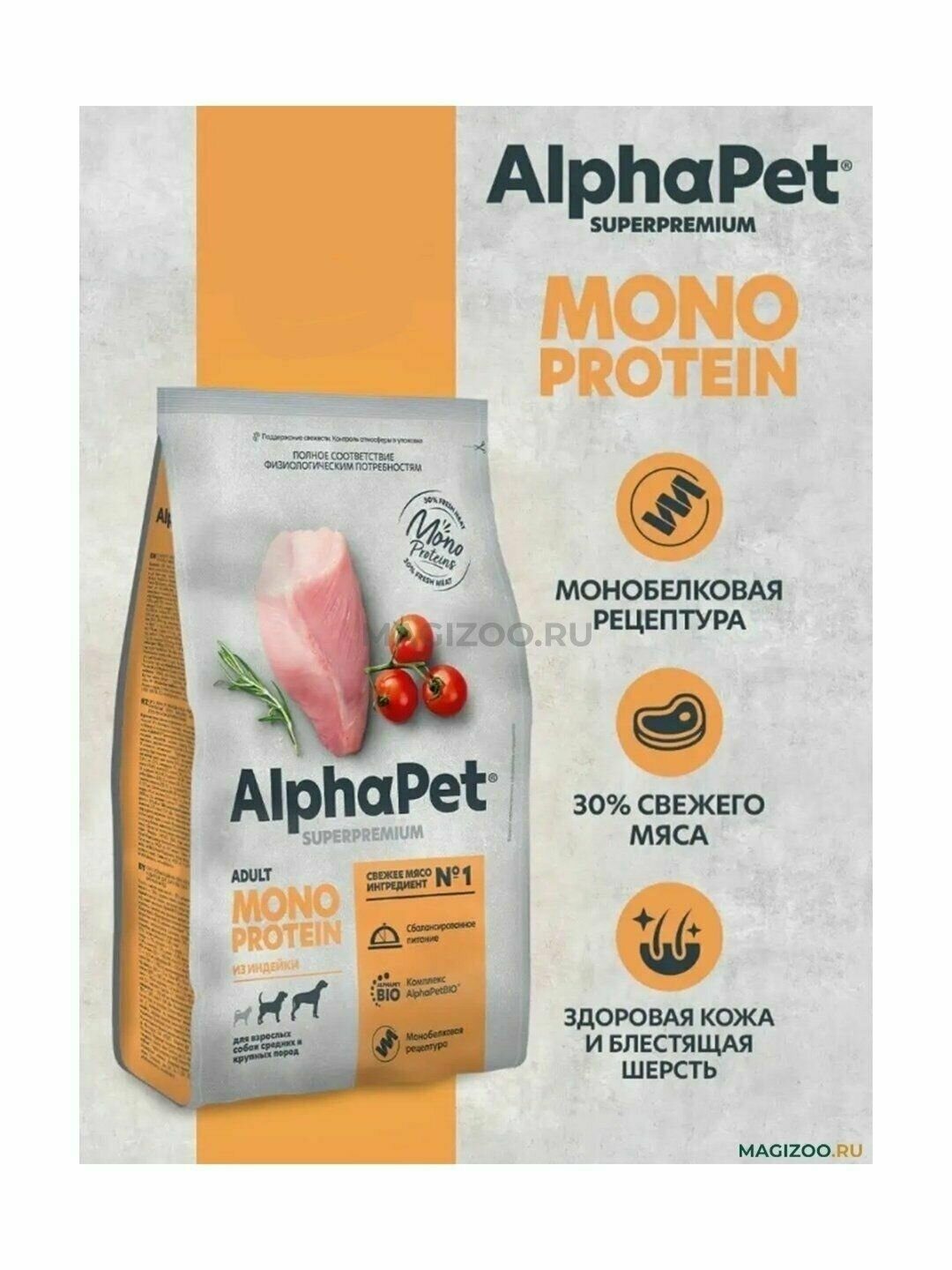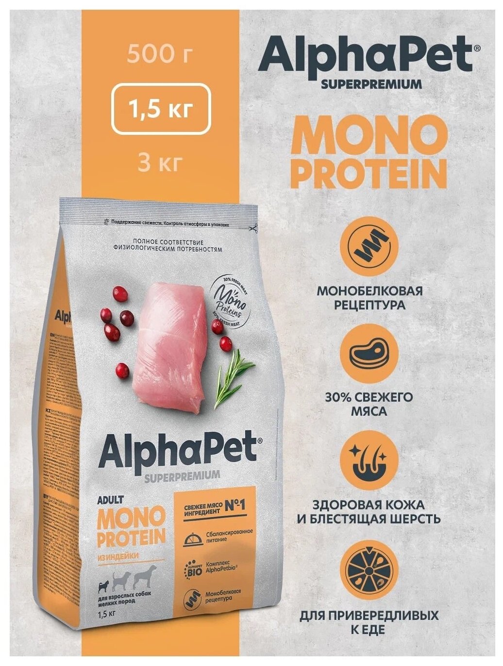 Альфа Пет 52642 MONOPROTEIN сух.двзрослых собак мелких пород из Индейки 500г, 108328 (5 шт)