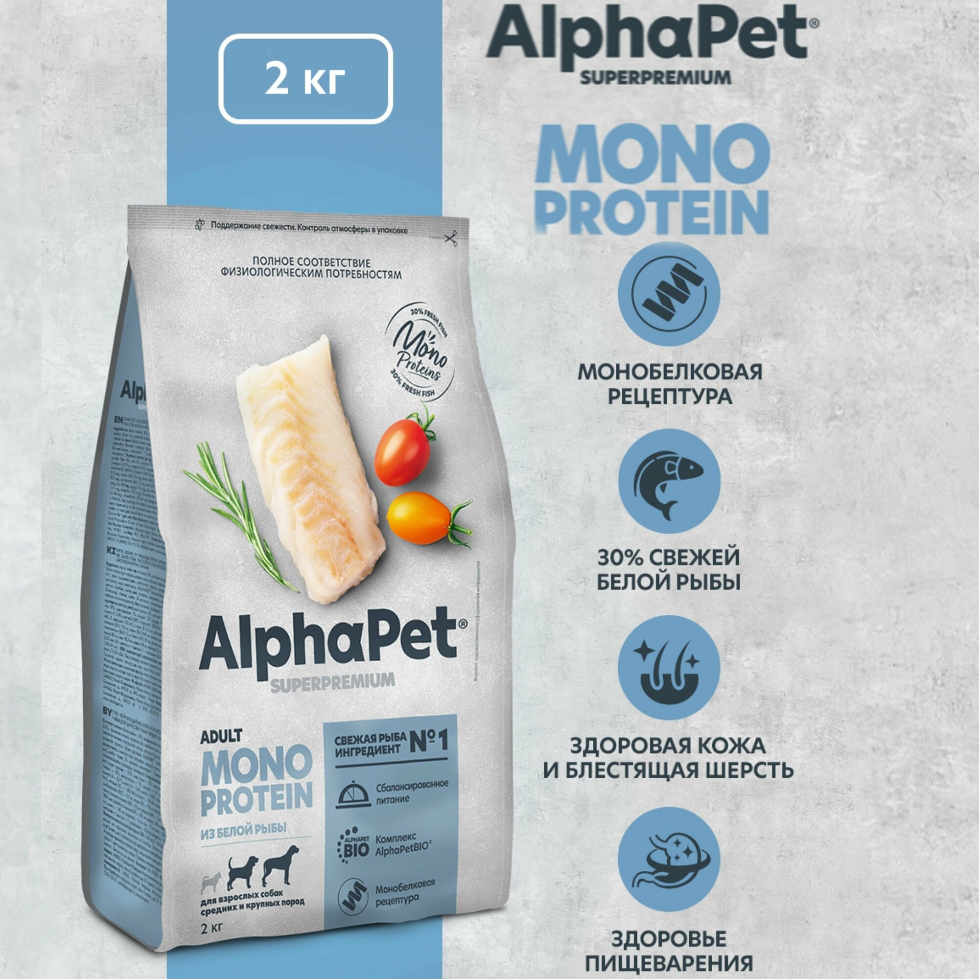 Купить Сухой корм для собак AlphaPet Superpremium Monoprotein средних и крупных пород с белой рыбой 2 кг