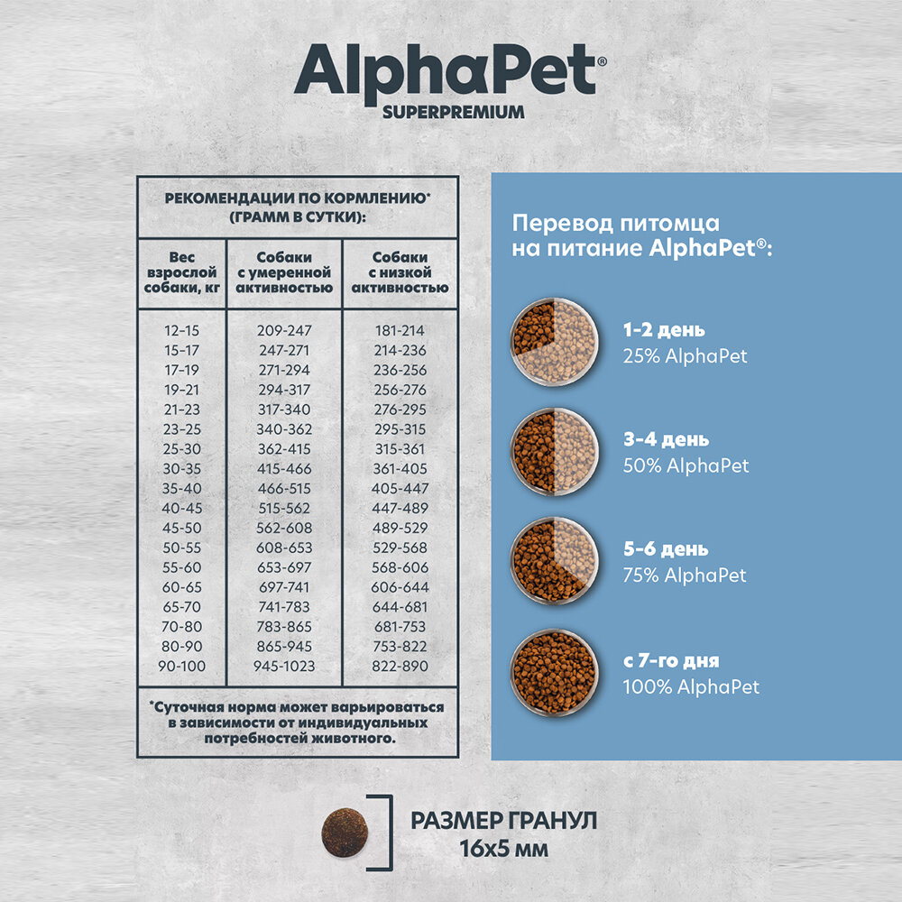 ALPHAPET SUPERPREMIUM 12 кг сухой корм для щенков до 6 месяцев, беременных и кормящих собак крупных пород с говядиной и рубцом, 82979 (1 шт)