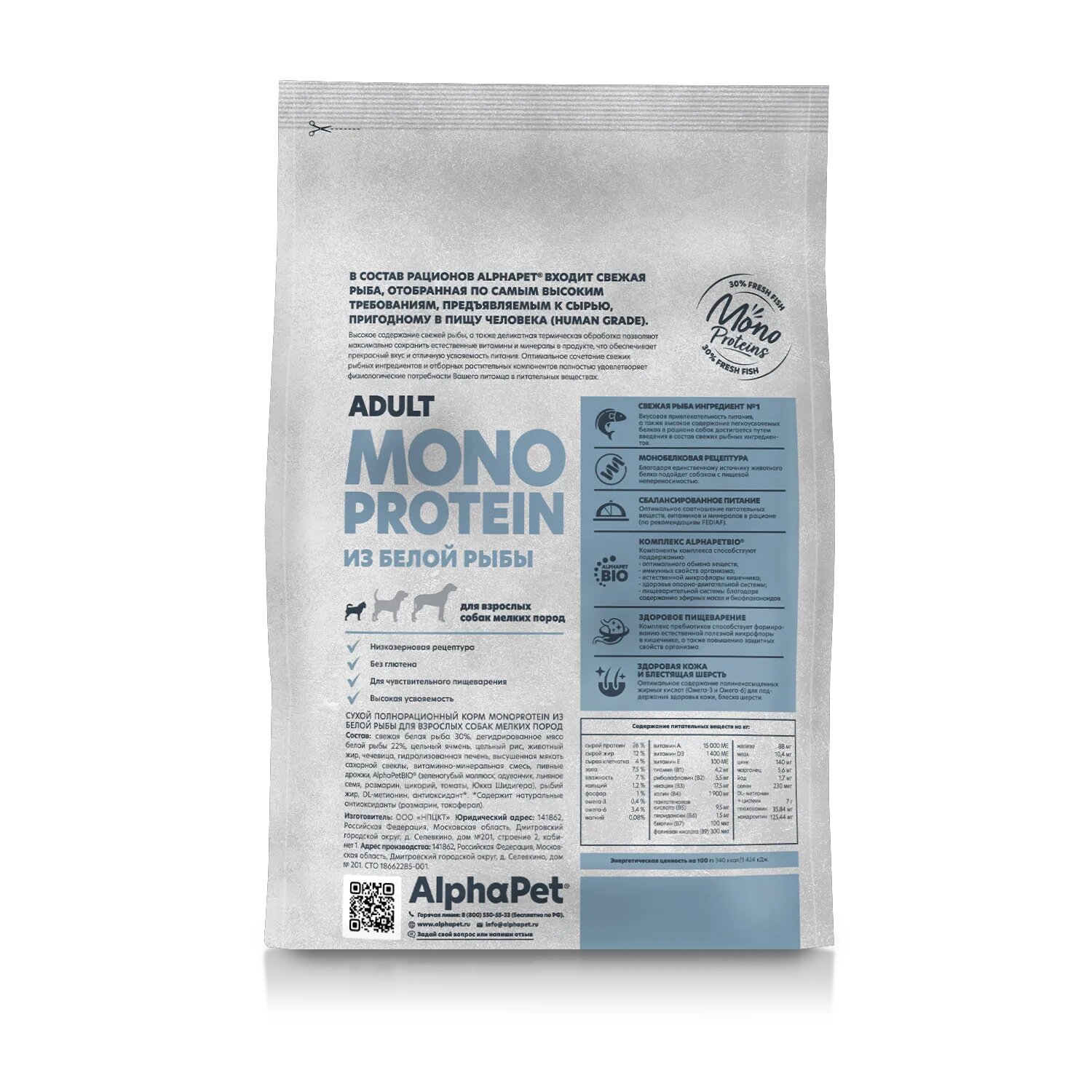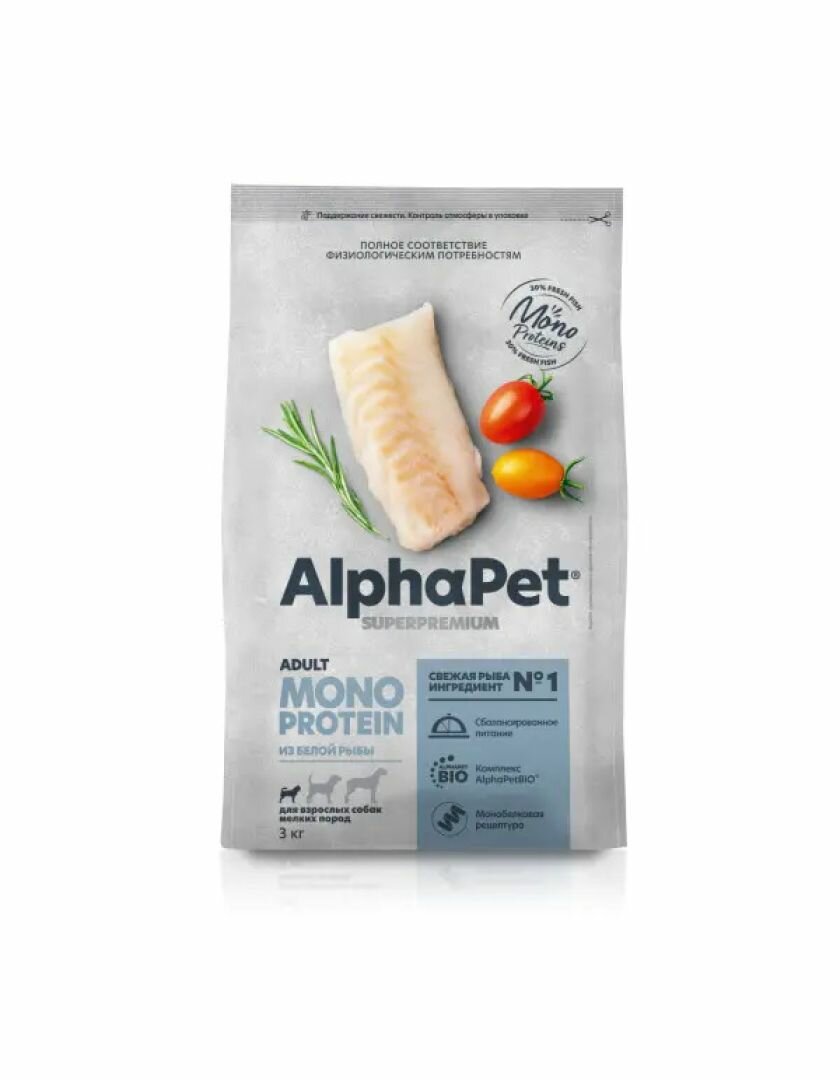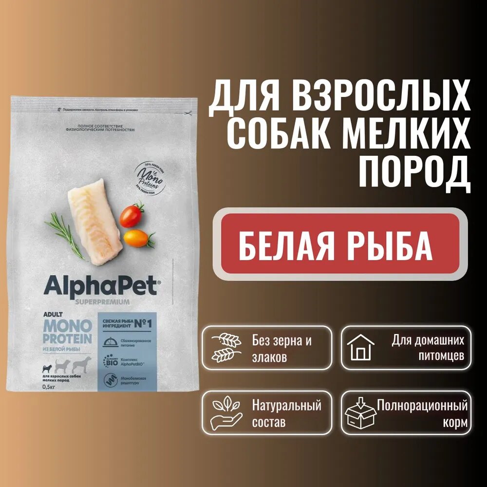 Купить ALPHAPET SUPERPREMIUM MONOPROTEIN 500 гр сухой корм для взрослых собак мелких пород из белой рыбы 1 шт