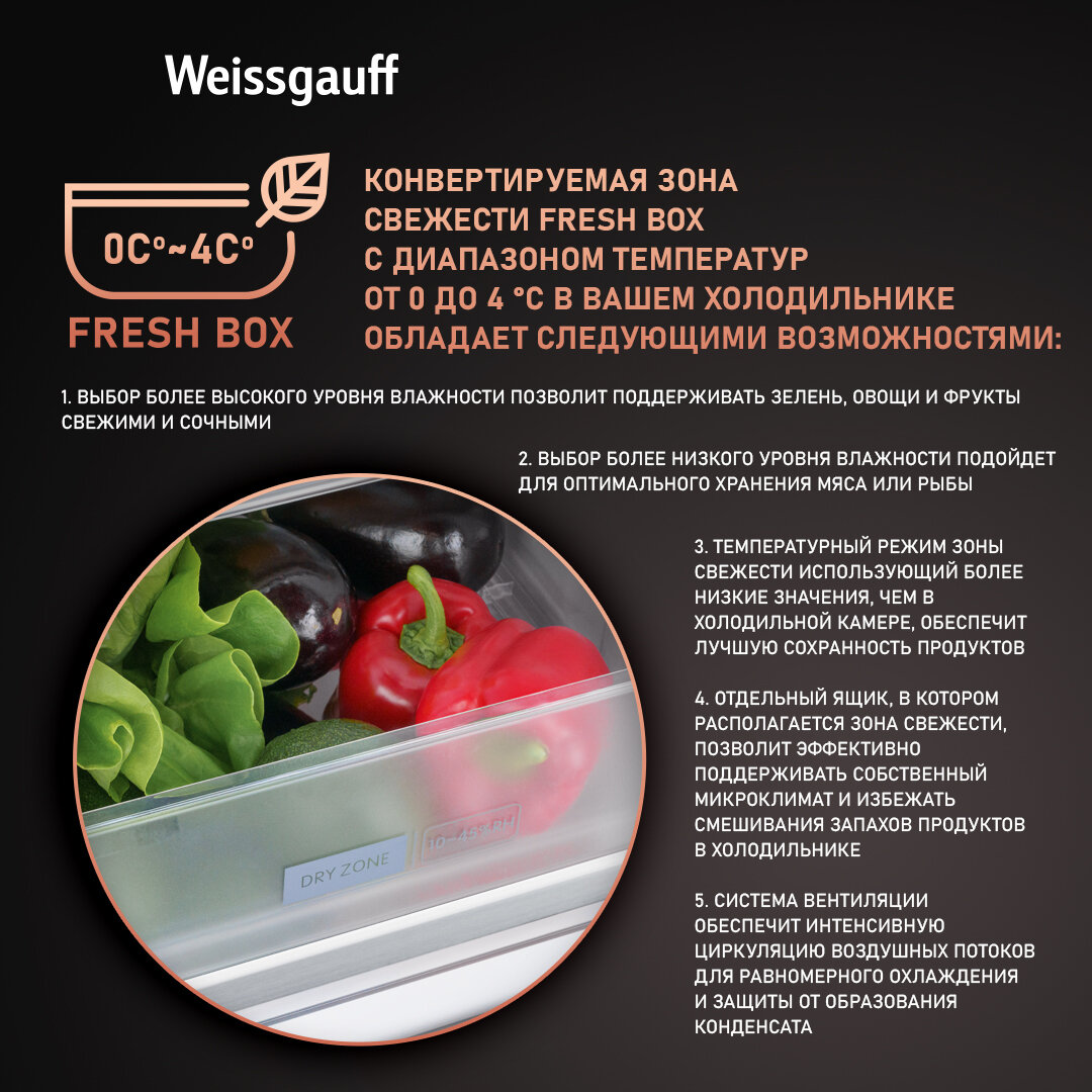 Холодильник Weissgauff WCD 450 XB NoFrost Inverter 2-хкамерн. черный (двухкамерный)