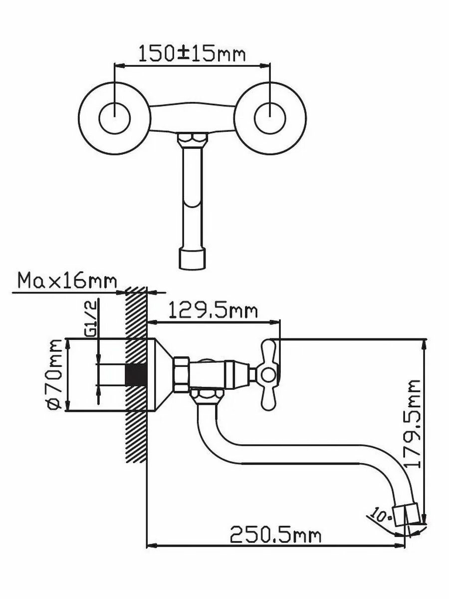 Настенный смеситель для кухни двухвентильный