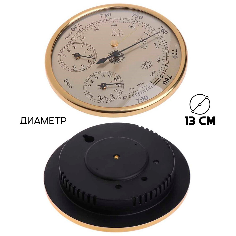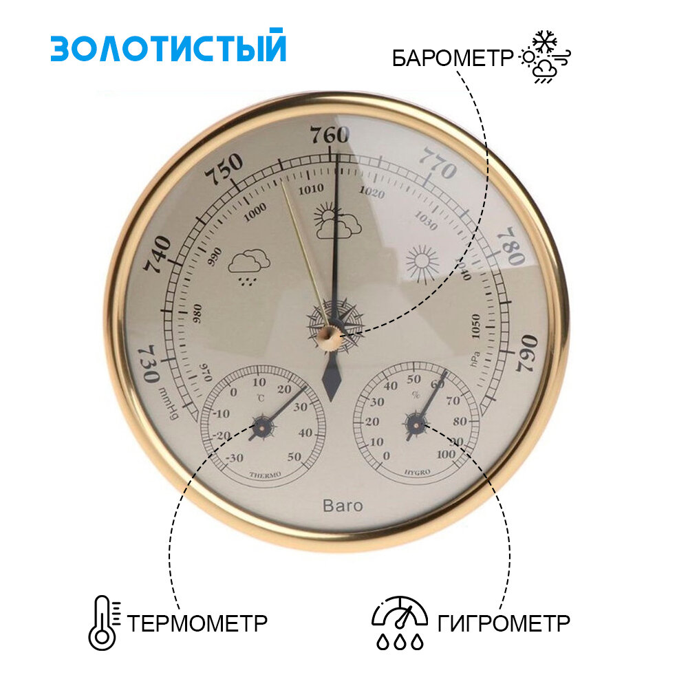 Барометр/ барометр анероид/THB 9392 G бытовой/ диаметр 125 мм, 3 в 1 - золотистый циферблат