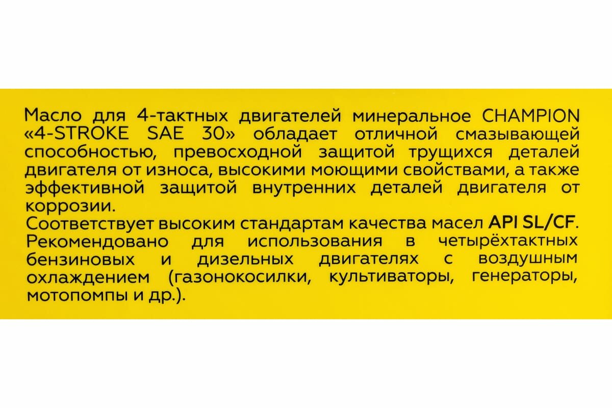Минеральное масло для четырехтактных двигателей Champion SAE 30 952852