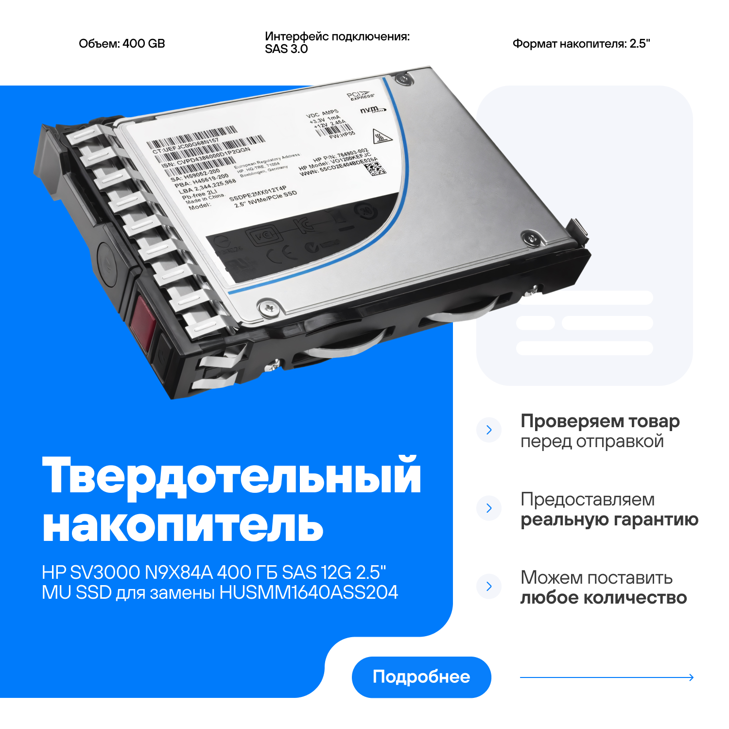 Твердотельный накопитель HP SV3000 N9X84A 400 ГБ SAS 12G 2.5" MU SSD интересное: