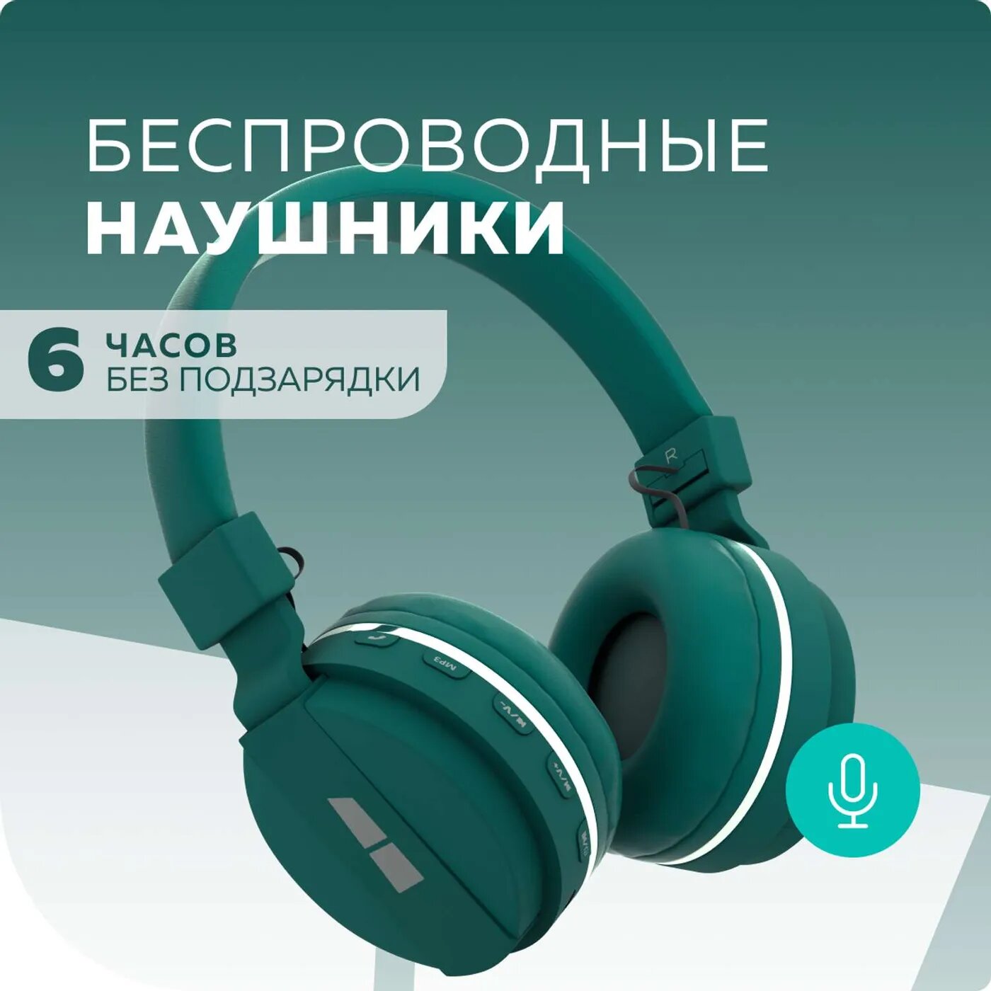 Наушники More Choice HW15 Green беспрводные накладные 5.0 200mAh