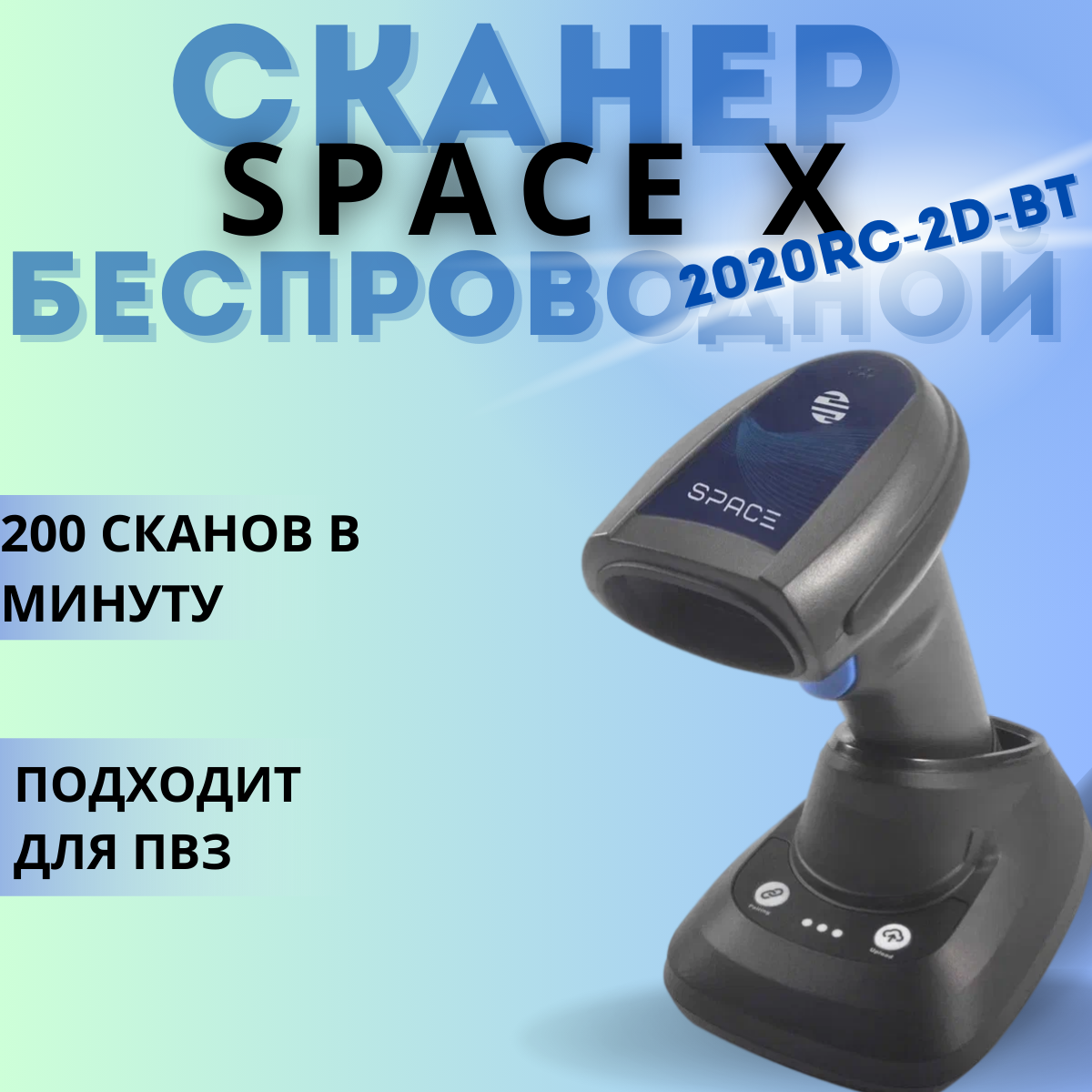 Беспроводной сканер штрих-кода SPACE X-2020RC-2D-BT, USB (черный) ,ЕГАИС , (для ПВЗ)
