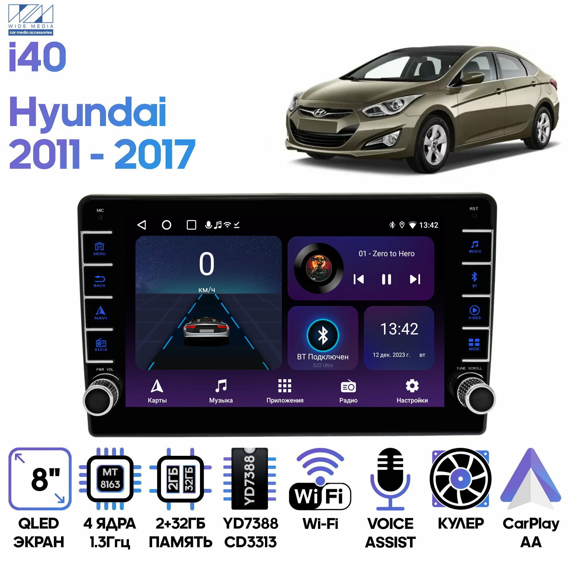 Ниже Вы можете прочитать отзывы на Штатная магнитола Wide Media Hyundai i40 2011 - 2017 / Android 9, 8 дюймов, WiFi, 2/32GB, 4 ядра, ознакомится с подробными характеристиками, посмотреть интересные обзоры и фотографии на Штатная магнитола Wide Media Hyundai i40 2011 - 2017 / Android 9, 8 дюймов, WiFi, 2/32GB, 4 ядра.